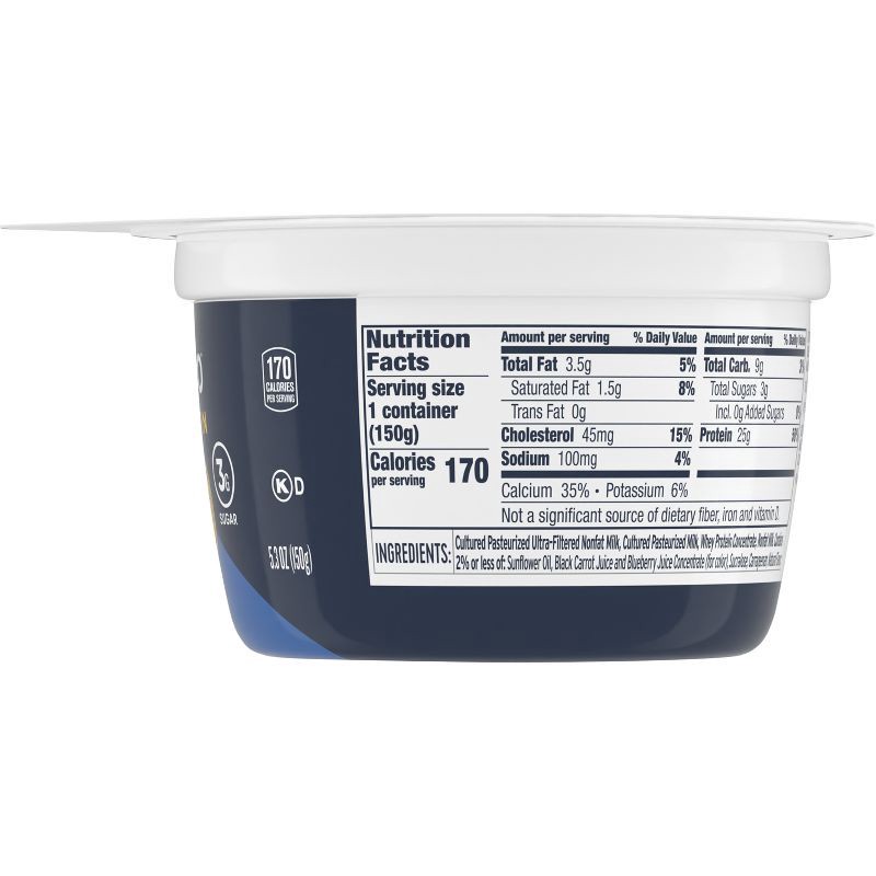 Cultured Pasteurized Ultra-Filtered Nonfat Milk, Cultured Pasteurized Milk, Whey Protein Concentrate, Nonfat Milk. Contains 2% or Less of: Sunflower Oil, Black Carrot Juice and Blueberry Juice Concent…
