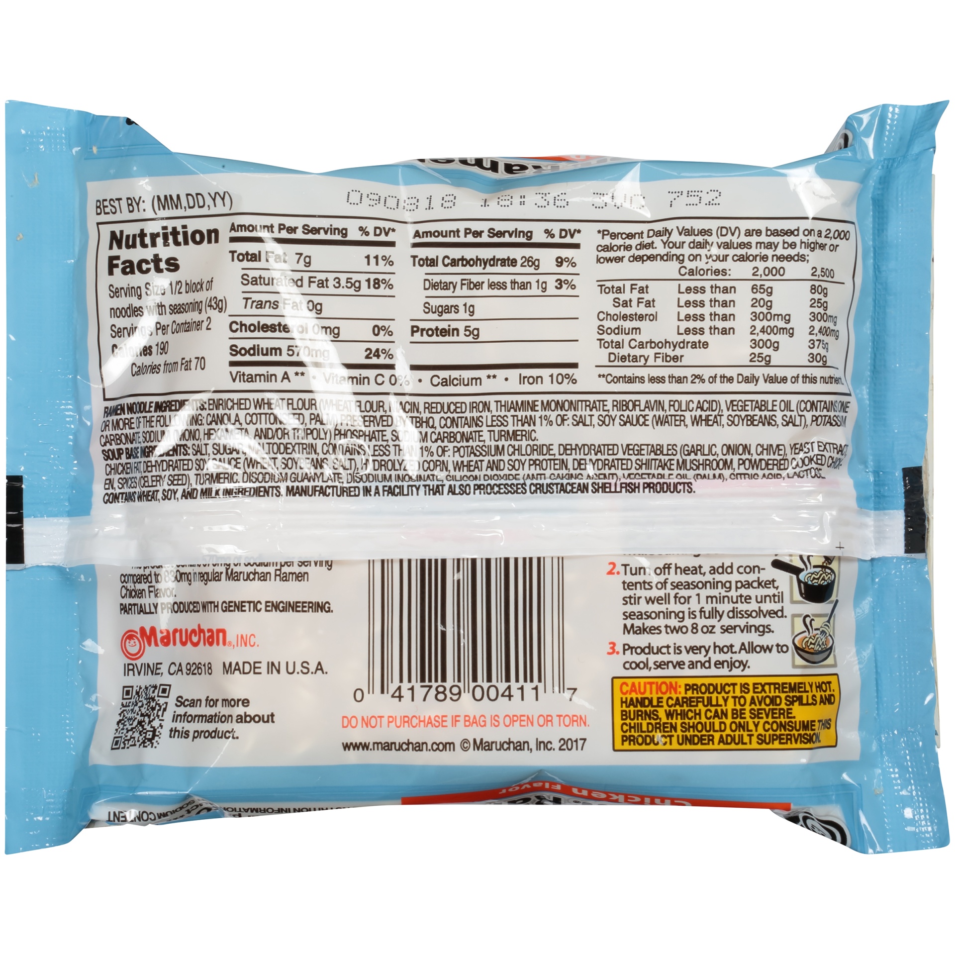 Cooking Directions: 1. Boil 2 cups of water in a saucepan, add noodles and cook for 3 minutes while stirring occasionally. 2. Turn off heat, add contents of seasoning packet, stir well for 1 minute un…