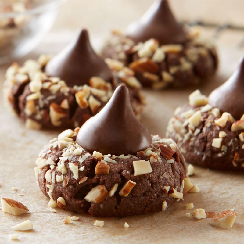 - The smooth, creamy HERSHEY'S KISSES milk chocolate you've come to love with fresh, crisp almonds for a crunch you won't want to miss in your Halloween, Christmas, Valentine's Day and Easter candy selections