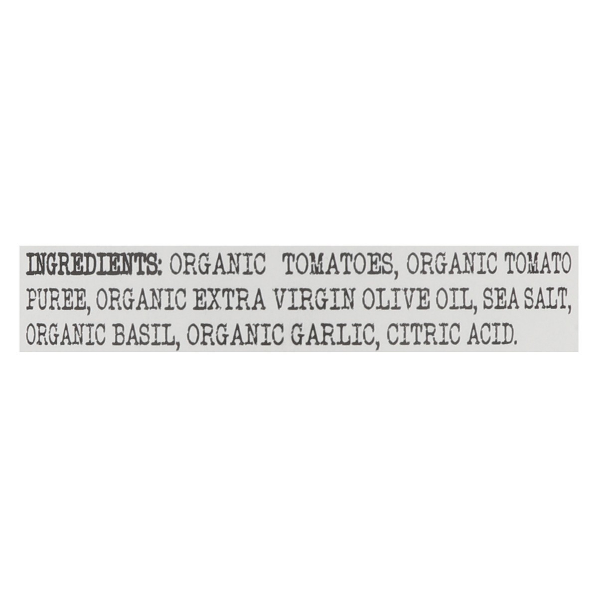 Organic Tomatoes, Organic Tomato Puree, Organic Extra Virgin Olive Oil, Sea Salt, Organic Basil, Organic Garlic, Citric Acid.