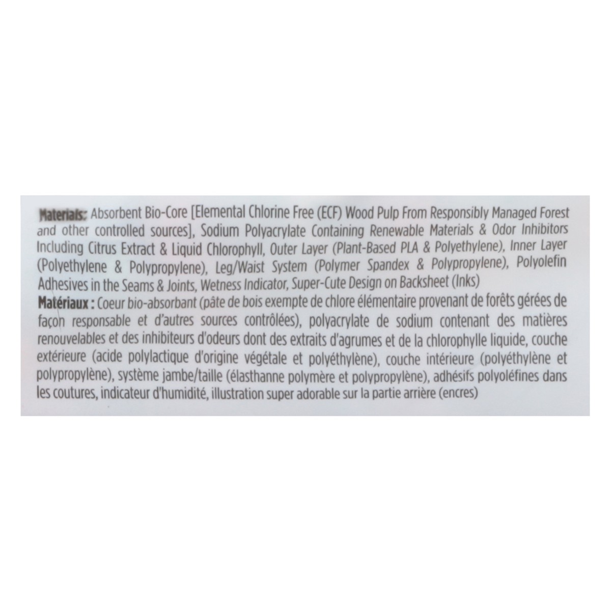 Materials: Absorbent Bio-Core [Elemental Chlorine Free (ECF) Wood Pulp from Responsibly Managed Forest and Other Controlled Sources], Sodium Polyacrylate Containing Renewable Materials & Odor Inhibito…
