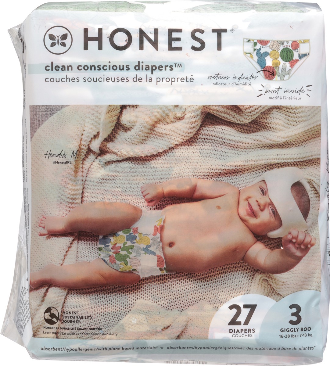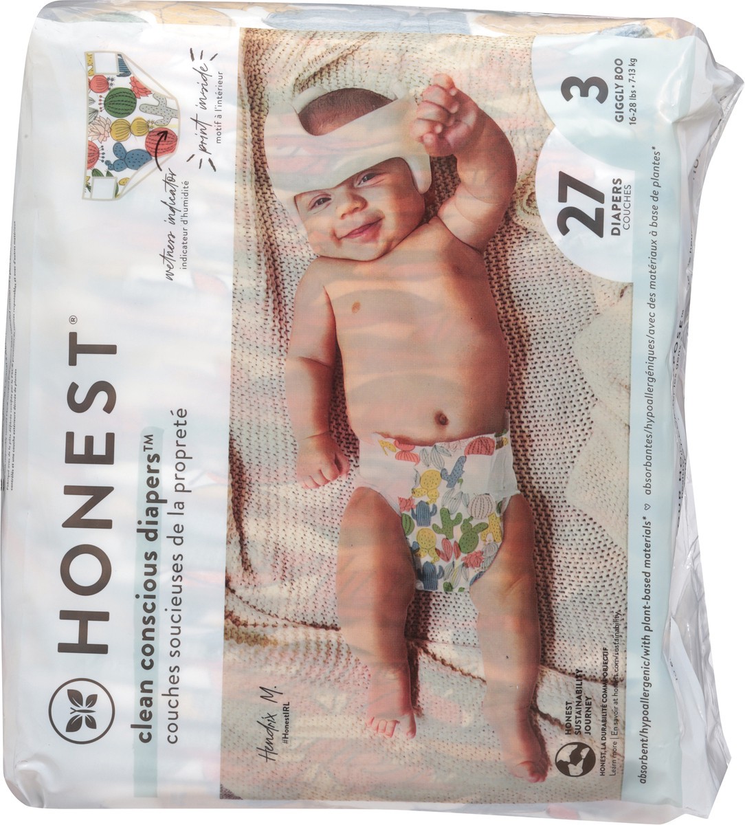 Honest Giggly Boo Cactus Cuties Clean Conscious Size 3 Diapers (16-28 lbs (7-13 kg)) 27 Each