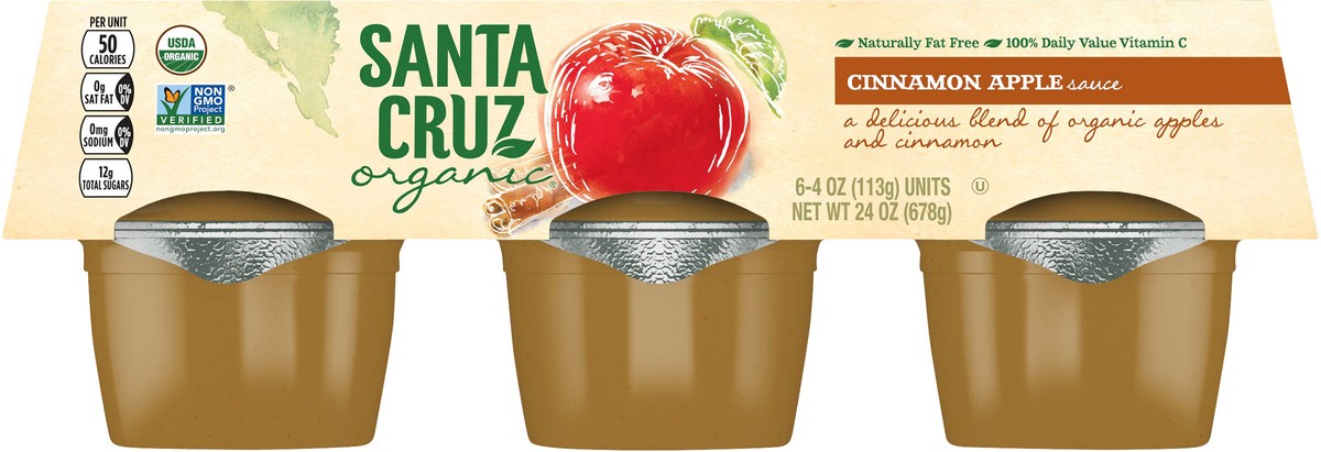 - Contains 6- 4 Ounce Cups of Santa Cruz Organic Cinnamon Apple Sauce
