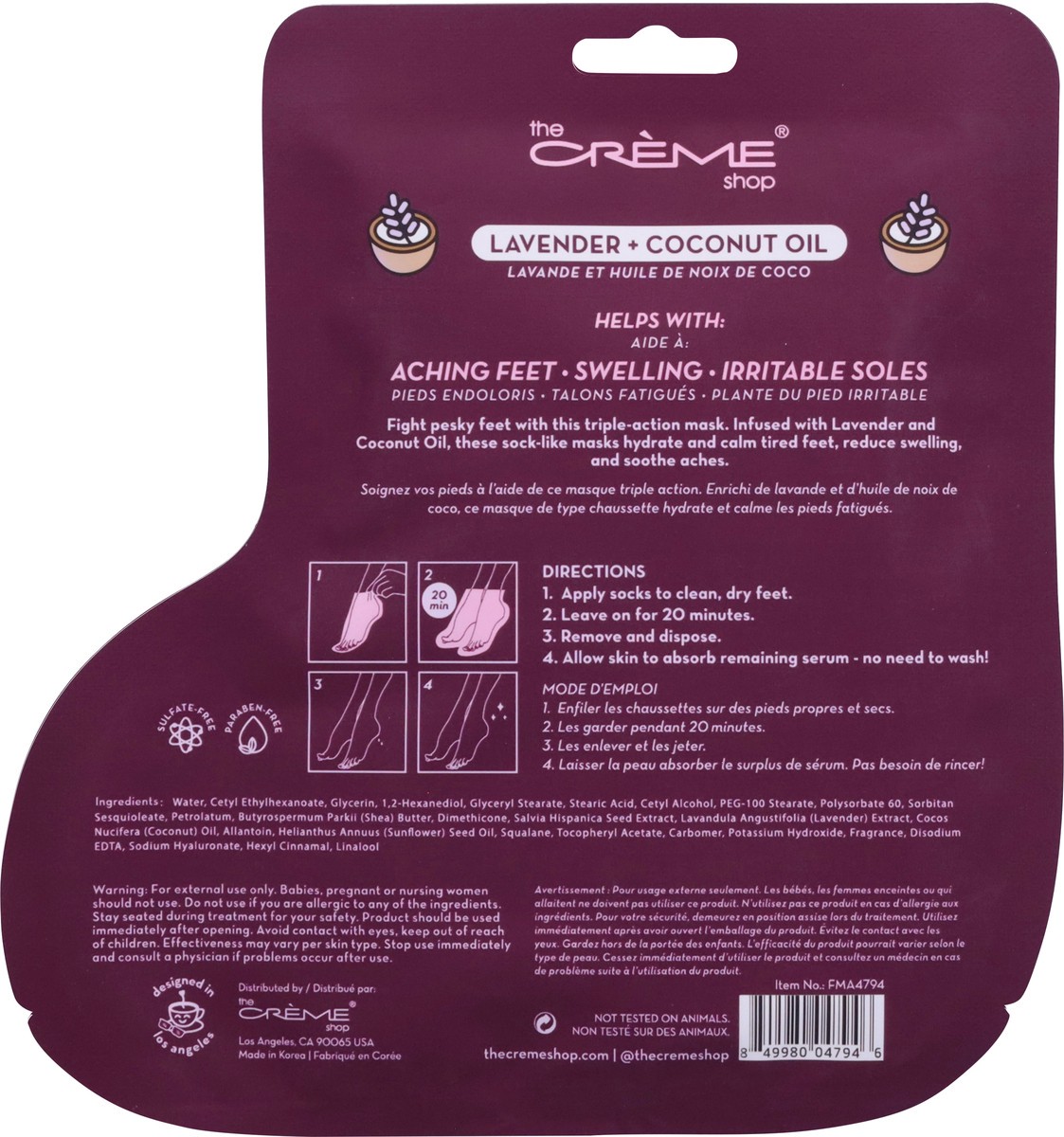 The Crème Shop Soothing & Softening Foot Mask - Lavender + Coconut Oil