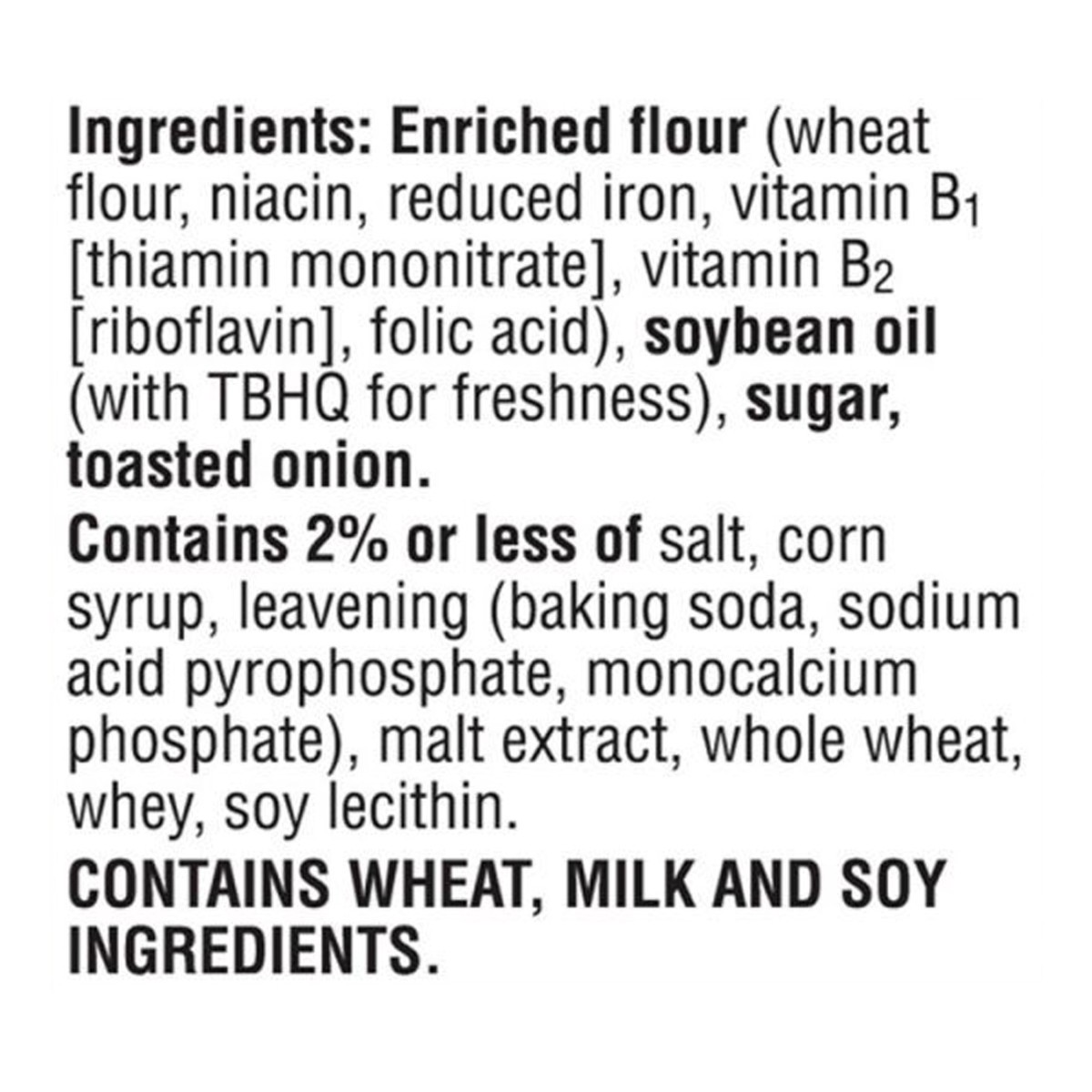 Ingredients: Enriched Flour (Wheat Flour, Niacin, Reduced Iron, Vitamin B1 [Thiamin Mononitrate], Vitamin B2 [Riboflavin], Folic Acid), Soybean Oil (With Tbhq For Freshness), Sugar, Toasted Onion. Con…