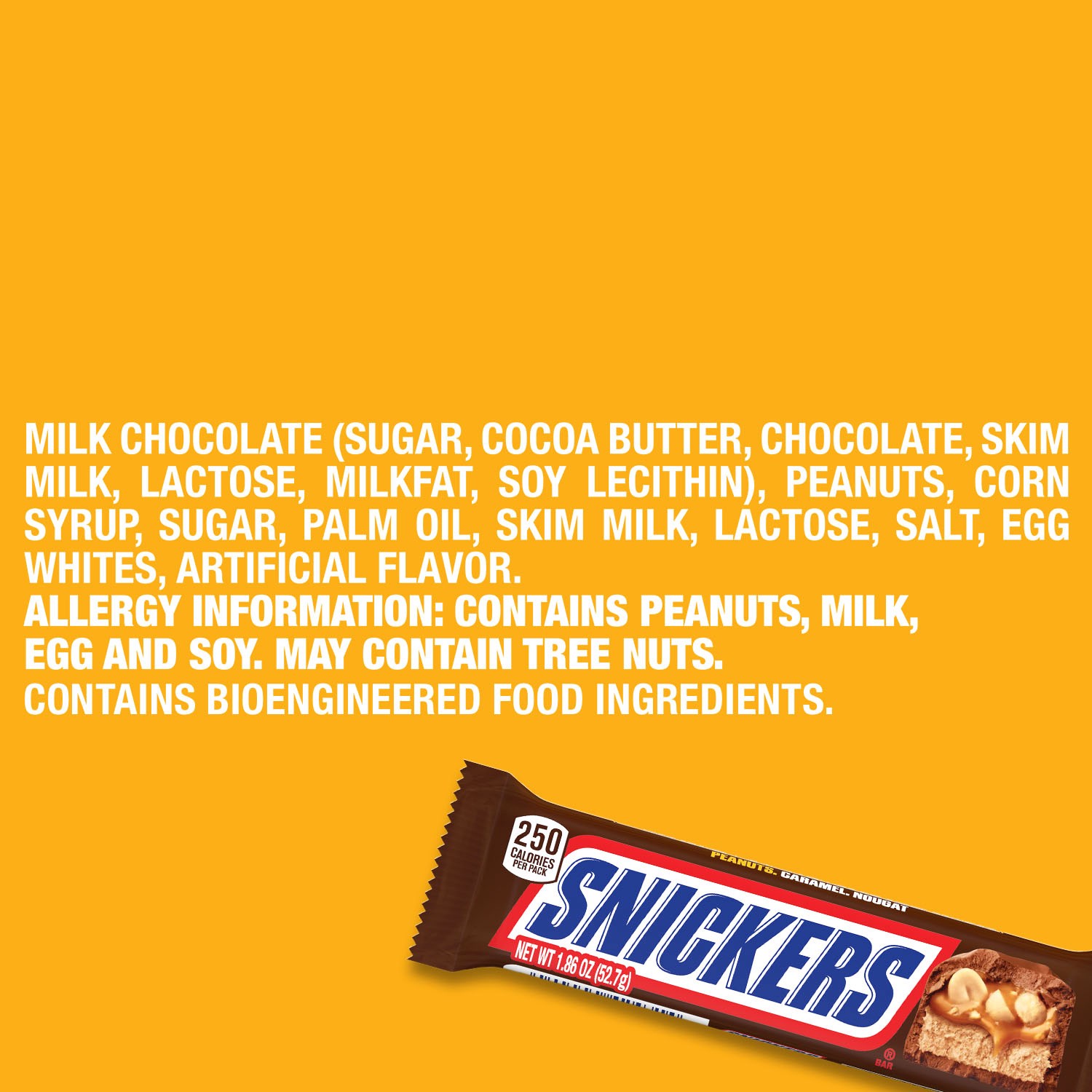 Contains one (1) 1.86 ounce SNICKERS Chocolate Candy Bar Made with caramel, nougat, peanuts and milk chocolate Stock your pantry with SNICKERS Candy for whenever you want a chocolate treat These full-…