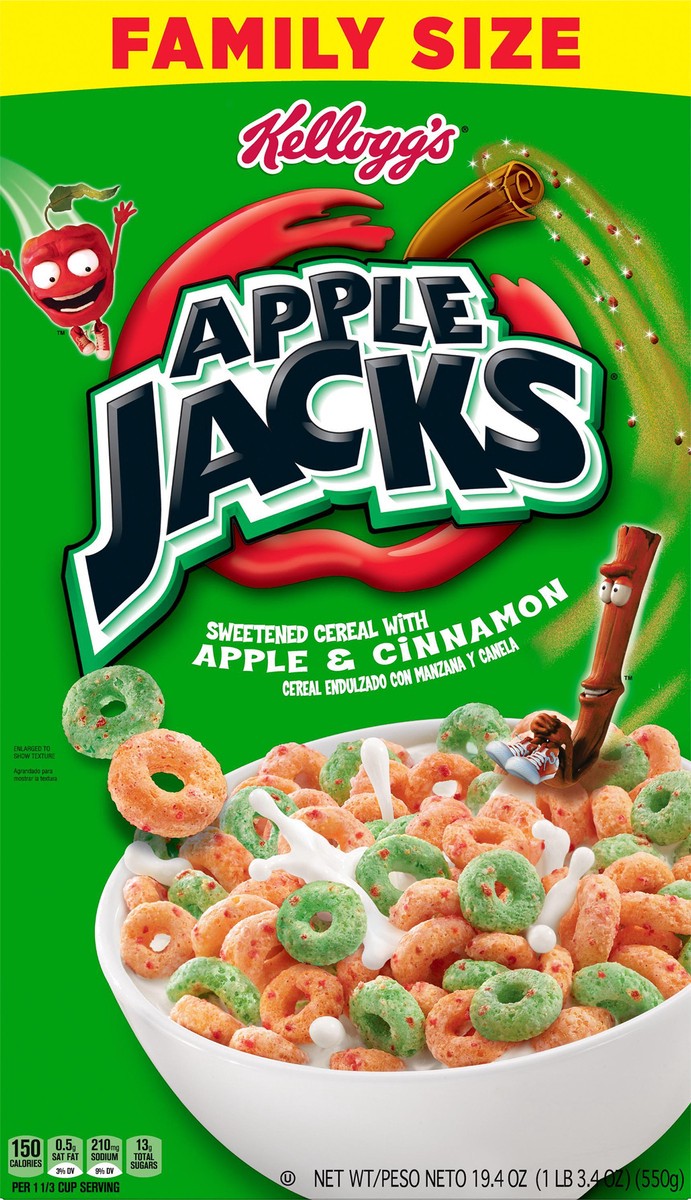 Start your day with Kellogg's Apple Jacks breakfast cereal and the crunch of delicious O's with the flavor of crisp apples and cinnamon. A low-fat breakfast cereal, Kellogg's Apple Jacks is a good sou…