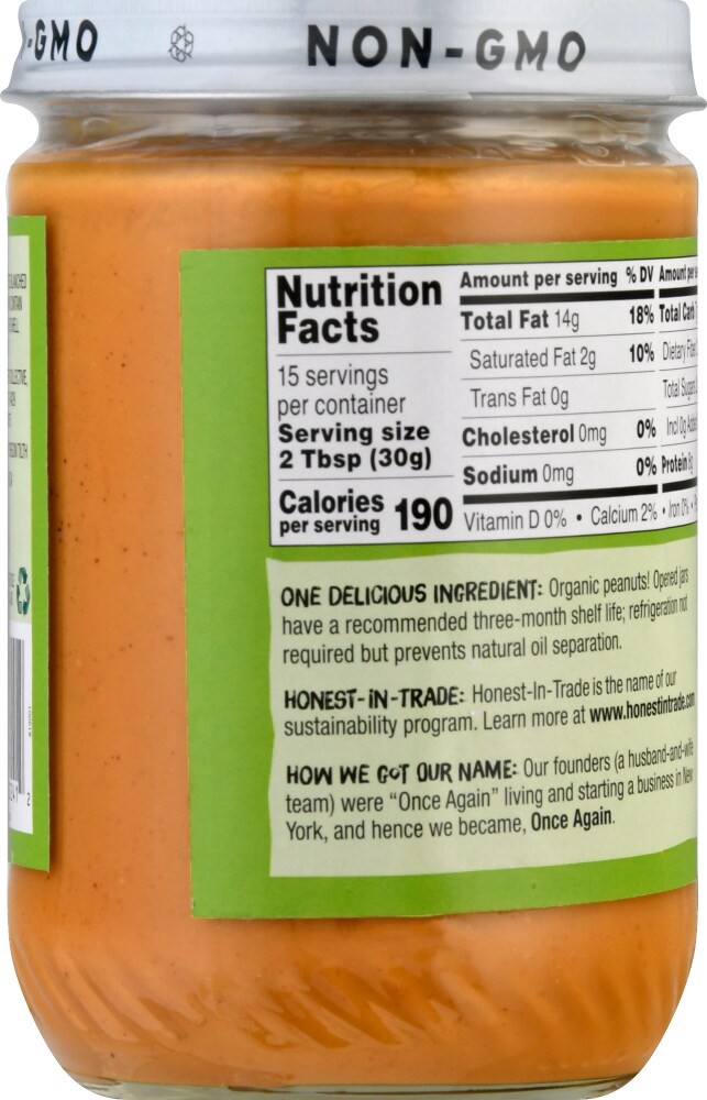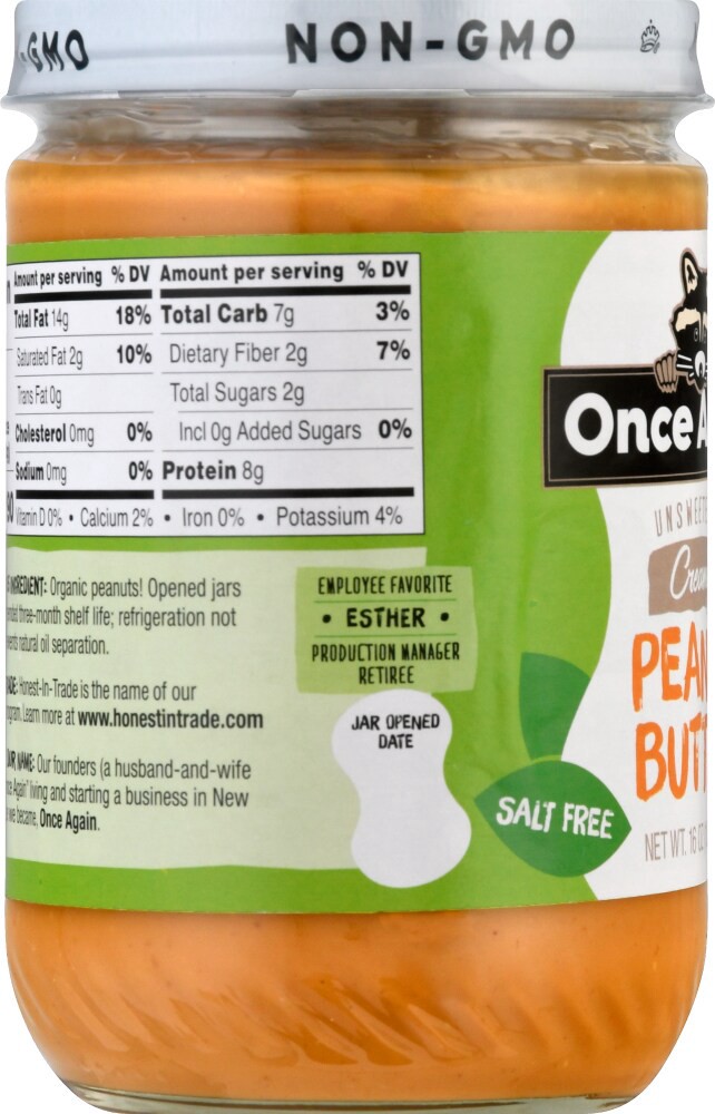 Once Again Unsweetened Salt Free Creamy Peanut Butter 16 oz