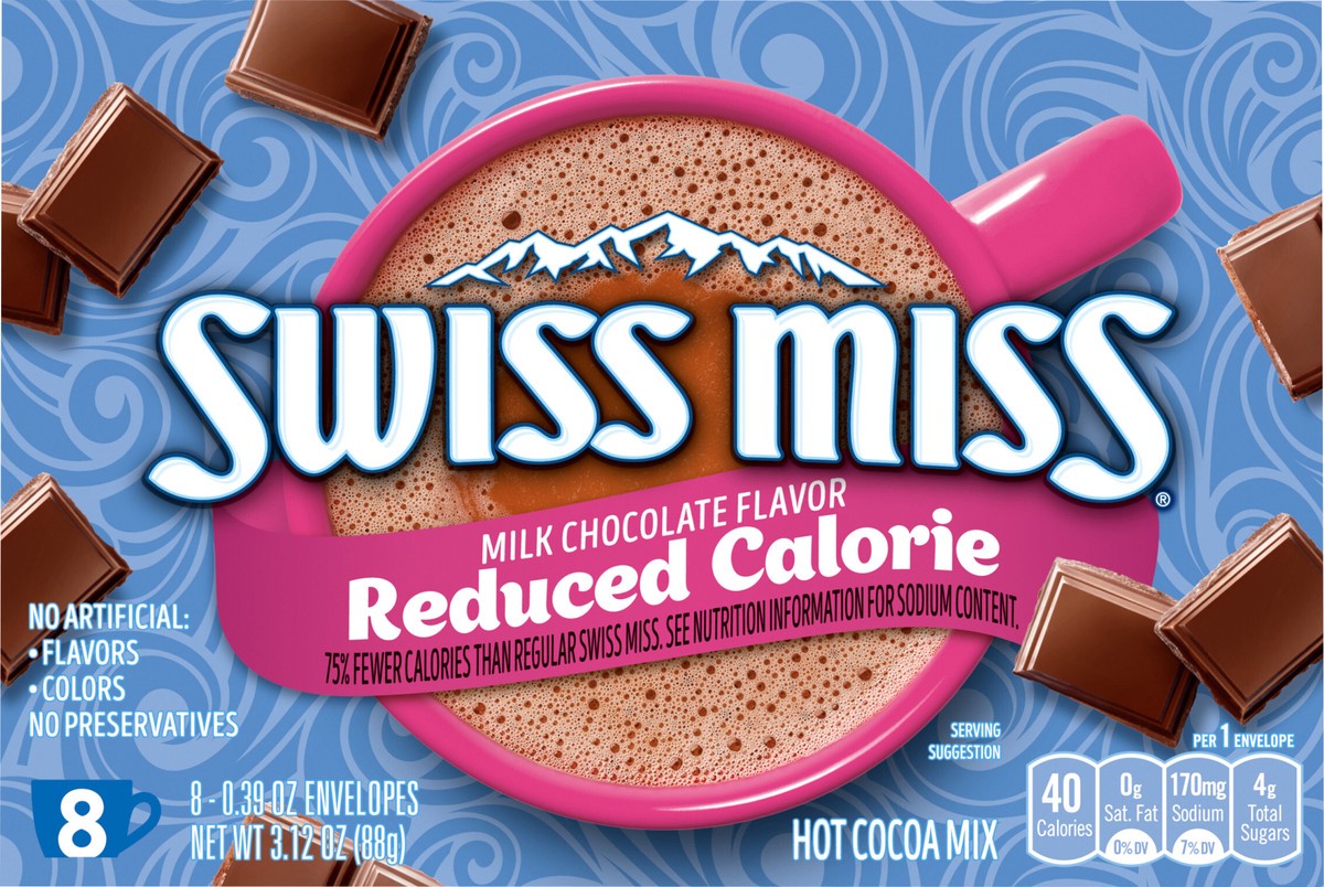 Swiss Miss Reduced Calorie Milk Chocolate Flavored Hot Cocoa Mix has 75% fewer calories than original Swiss Miss (see nutrition information for sodium content). The milk chocolate flavored hot cocoa d…