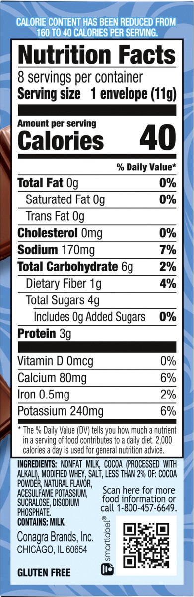 Nonfat Milk, Cocoa (Processed with Alkali), Modified Whey, Salt, Less than 2% of: Cocoa Powder, Natural Flavor, Acesulfame Potassium, Sucralose, Disodium Phosphate.