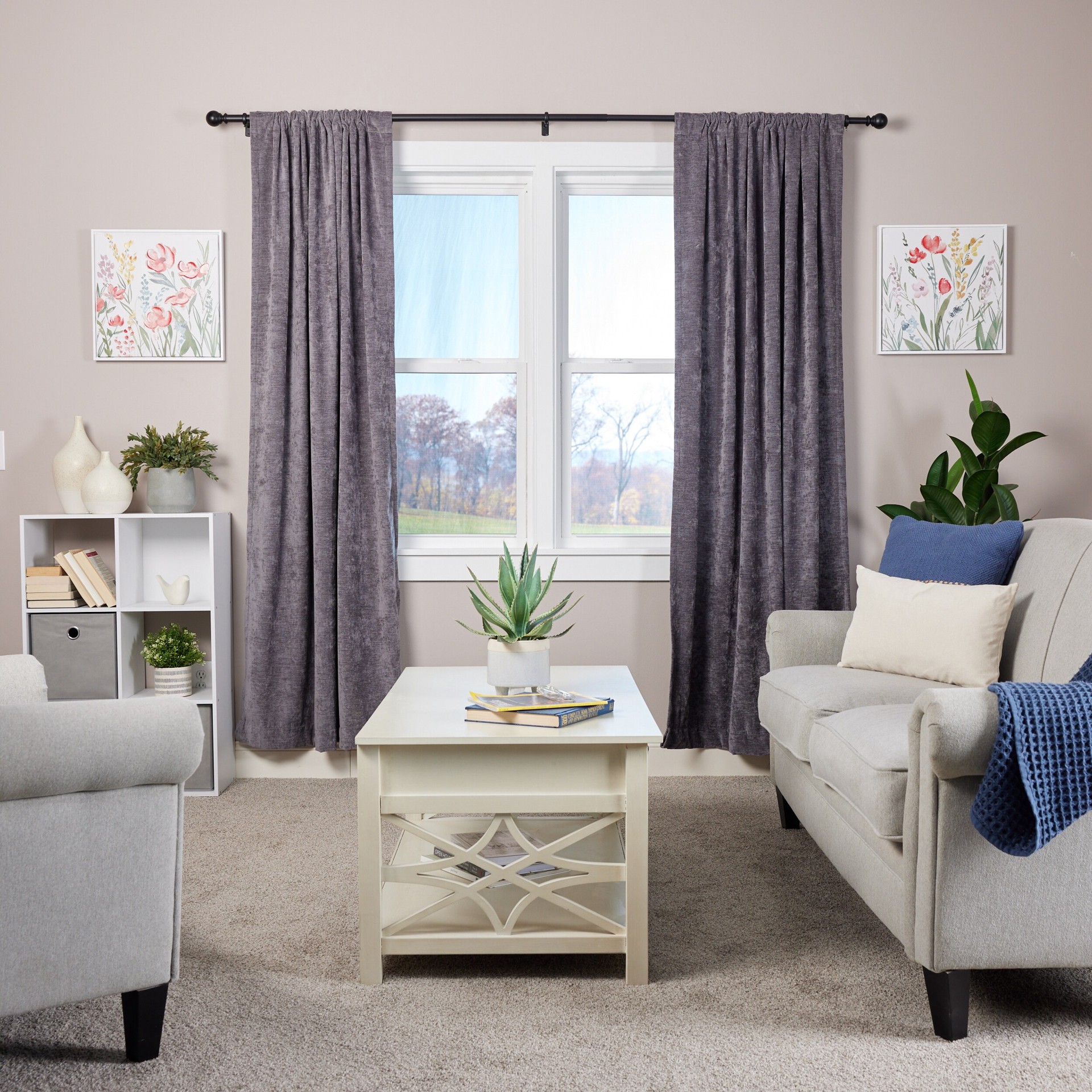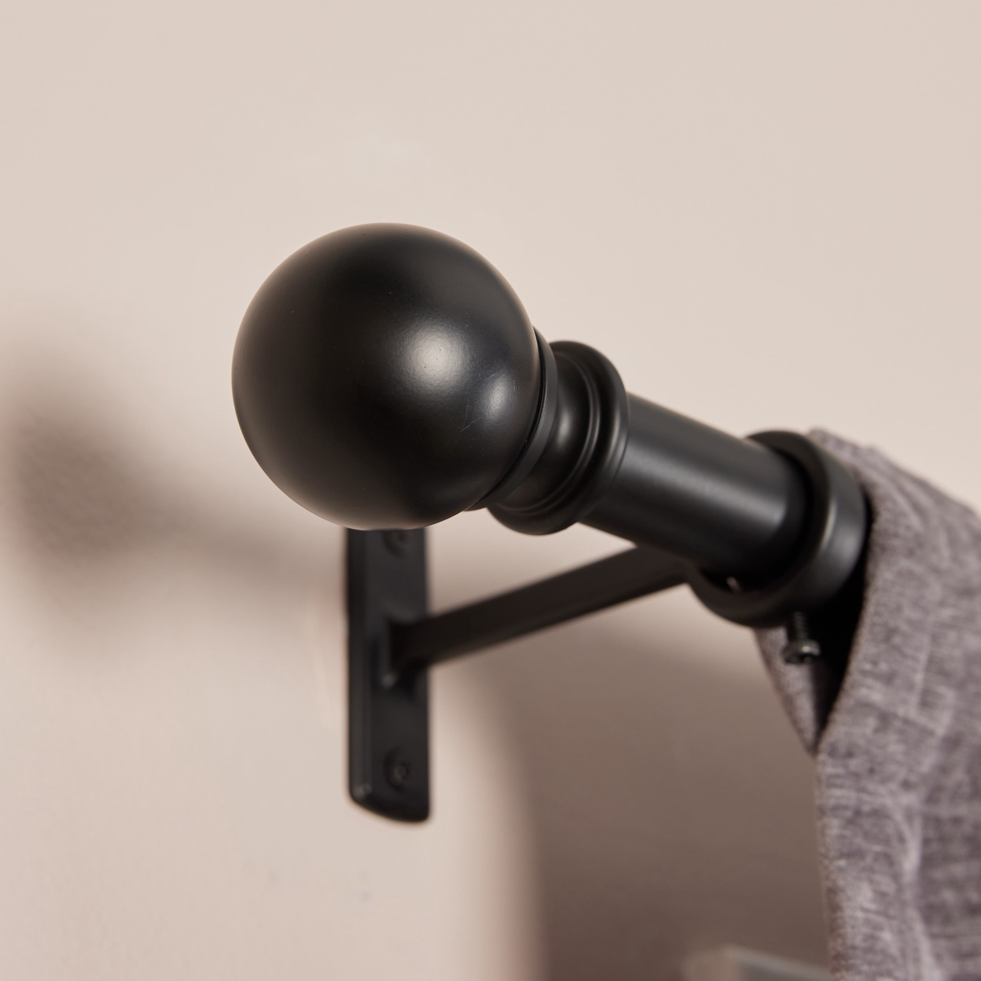 allen + roth Wallace 72-in to 144-in Matte Black Steel Single Curtain Rod with Finials