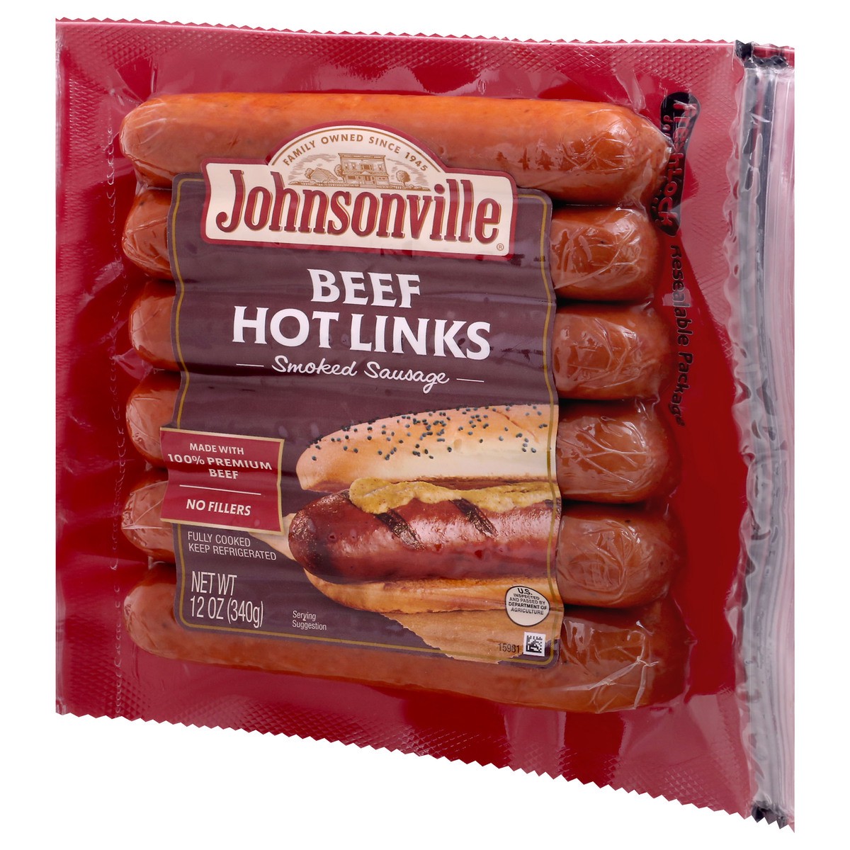 Johnsonville Sausage Smoked Hot Links Beef 6 Links - 12 Oz