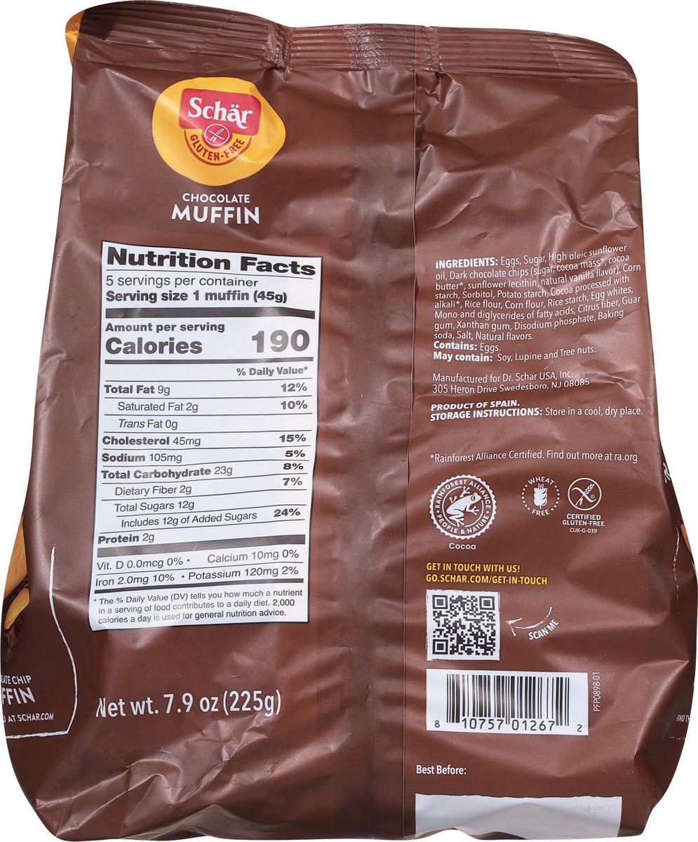 This gluten free, shelf stable chocolate chip muffin is incredibly soft in texture while still staying moist and delicious. 5 individually wrapped muffins make it perfect for on-the-go or in kid's lun…