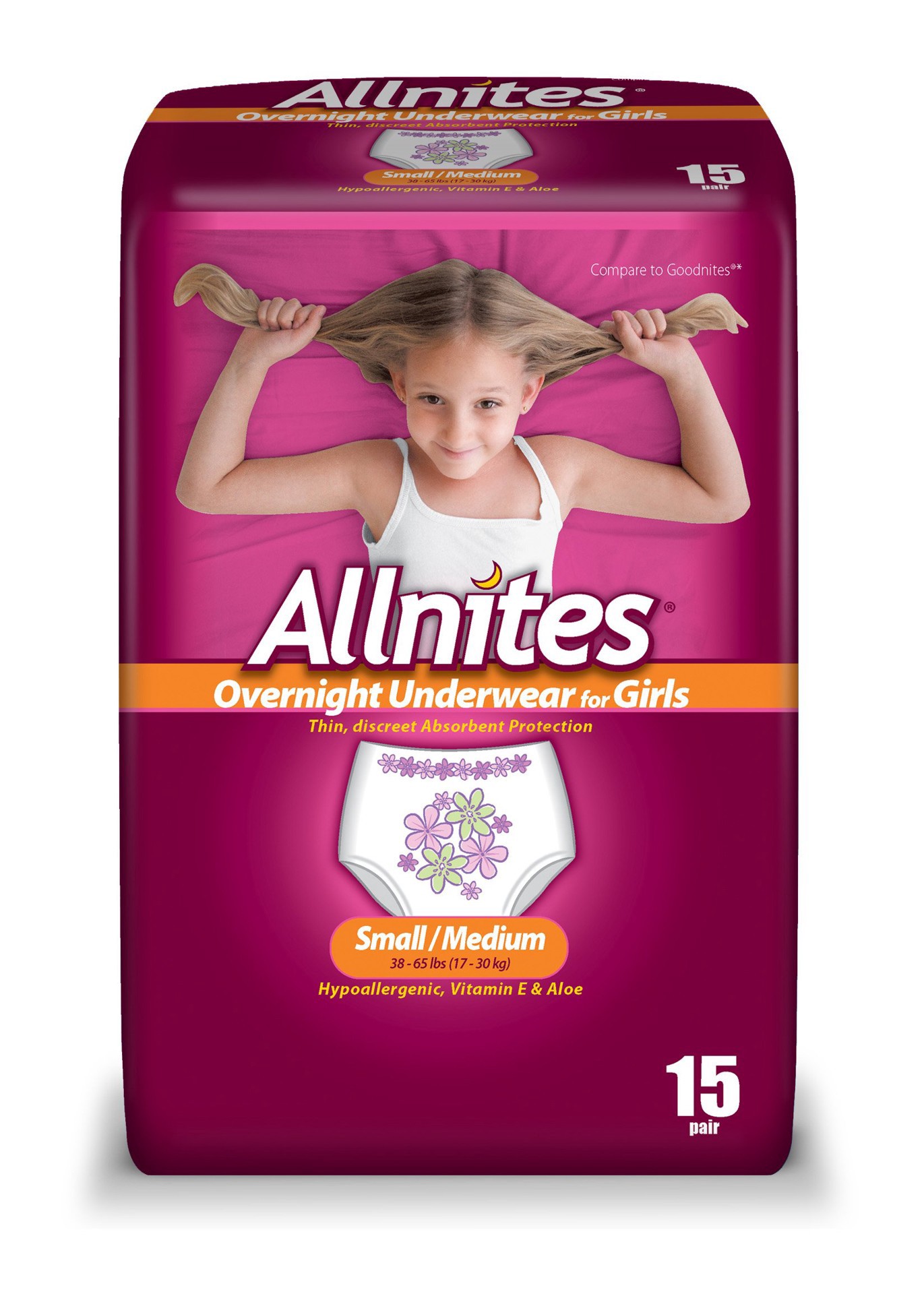 Allnites For Girls Overnight Small/Medium Underwear 15 ea