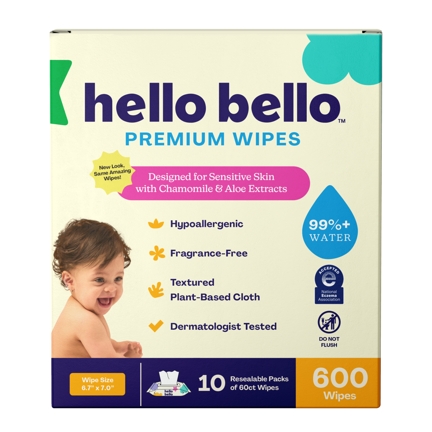 Made with 99%+ pure water with a touch of aloe and chamomile. Hello Bello wipes are super soft and super strong, all-in-one. Our thick cloth makes these wipes tough enough to handle any cleanup. Pop o…