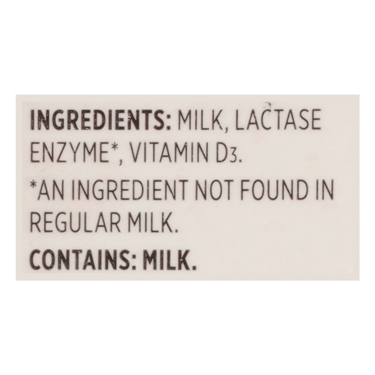 Milk, Lactase Enzyme*, Vitamin D3, *an Ingredient Not Found in Regular Milk.
