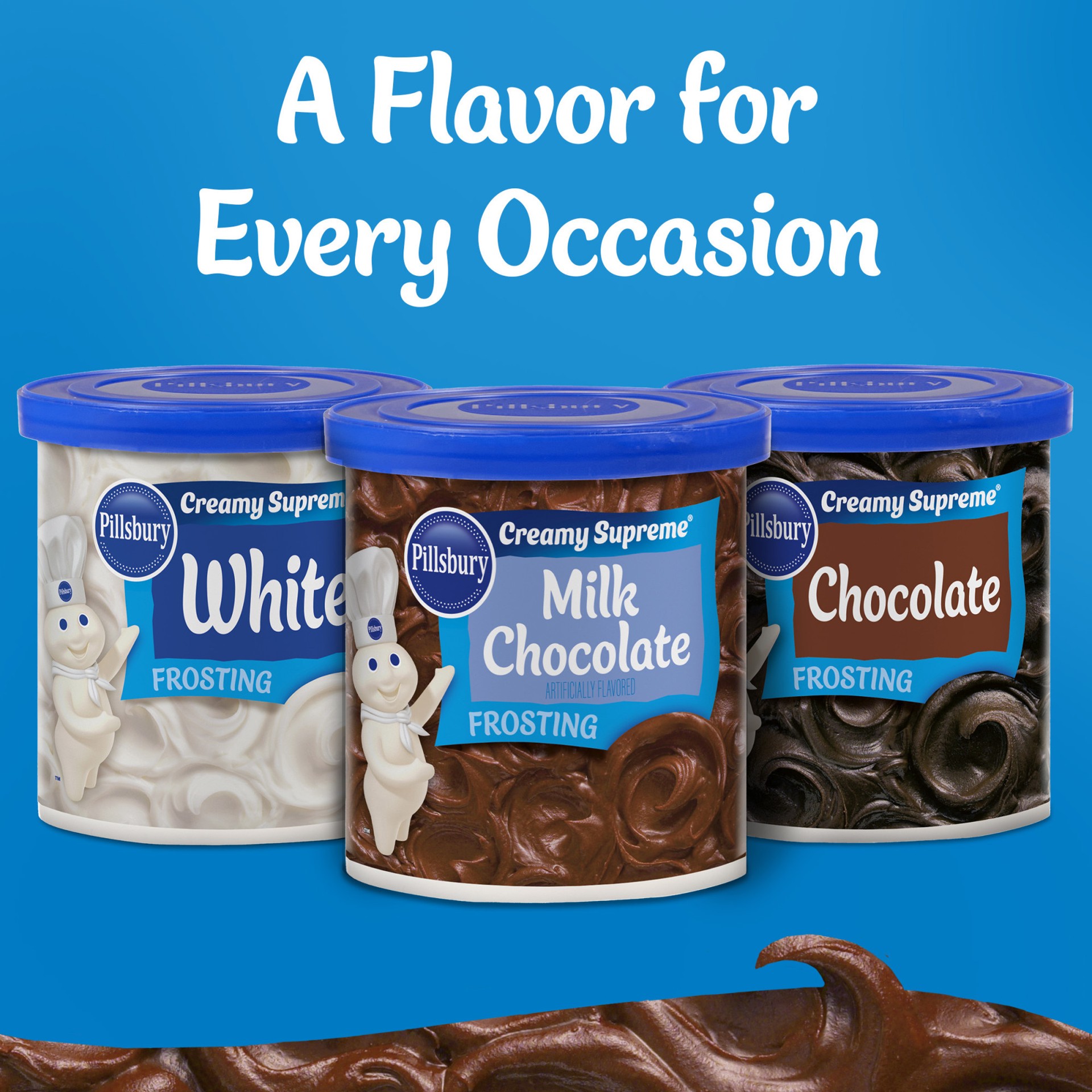 Take any treat from delicious to delightful with Pillsbury Creamy Supreme Milk Chocolate Frosting. Thick, rich and spreadable, Pillsbury Creamy Supreme Frosting is ideal for cakes, cupcakes, cookies, …