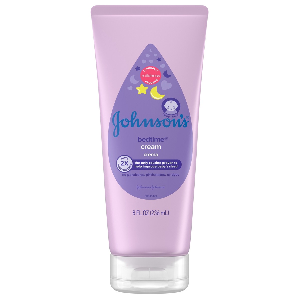 Johnson's Baby Bedtime Moisturizing Body Cream, Relaxing Aromas, Night Time Baby Massage Cream for Dry Skin Relief, Hypoallergenic, No Parabens, Phthalates or Dyes, 8 fl. oz