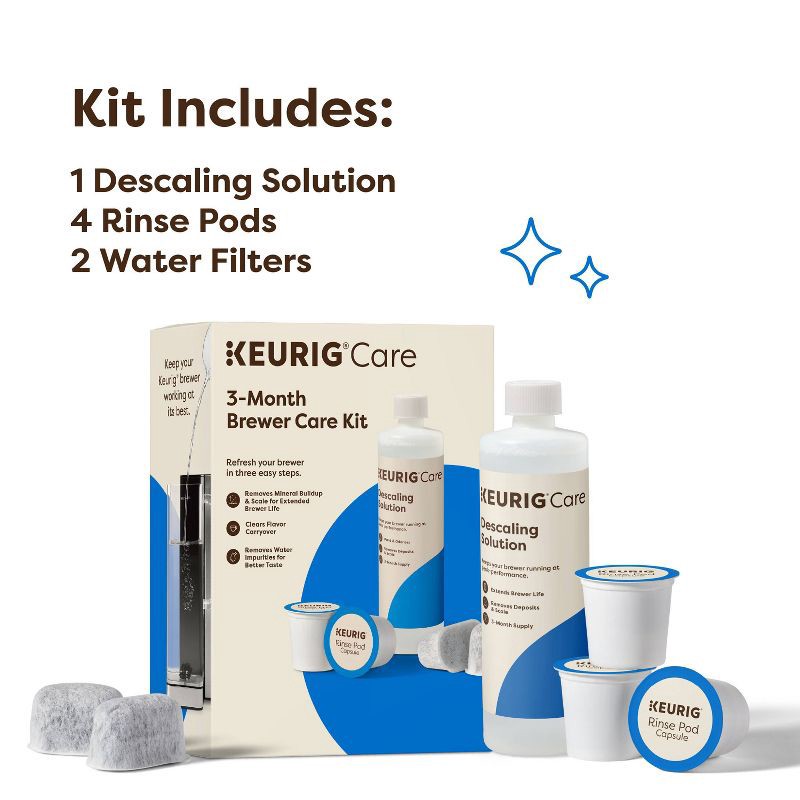 Keurig 3 Month Brewer Care Kit: Descaling Solution & Cleaner for Coffee Maker Maintenance