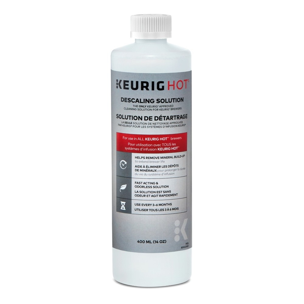 1-14 fl oz (400 ml) descale solution. 4-0.1 oz (0.4 g)/ea. Net wt 0.4 oz (1.6 g) rinse pods. 2-1.1 oz (31.2 g) water filters. Clean and care for your Keurig brewer 3 month supply. Removes mineral buil…