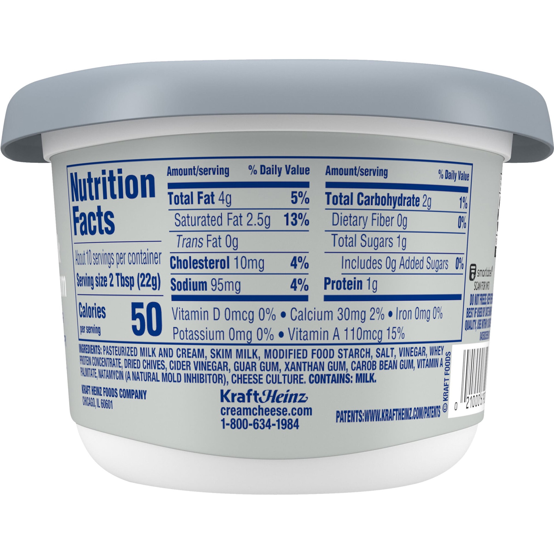PASTEURIZED MILK AND CREAM, SKIM MILK, MODIFIED FOOD STARCH, SALT, VINEGAR, WHEY PROTEIN CONCENTRATE, DRIED CHIVES, CIDER VINEGAR, GUAR GUM, XANTHAN GUM, CAROB BEAN GUM, VITAMIN A PALMITATE, NATAMYCIN…
