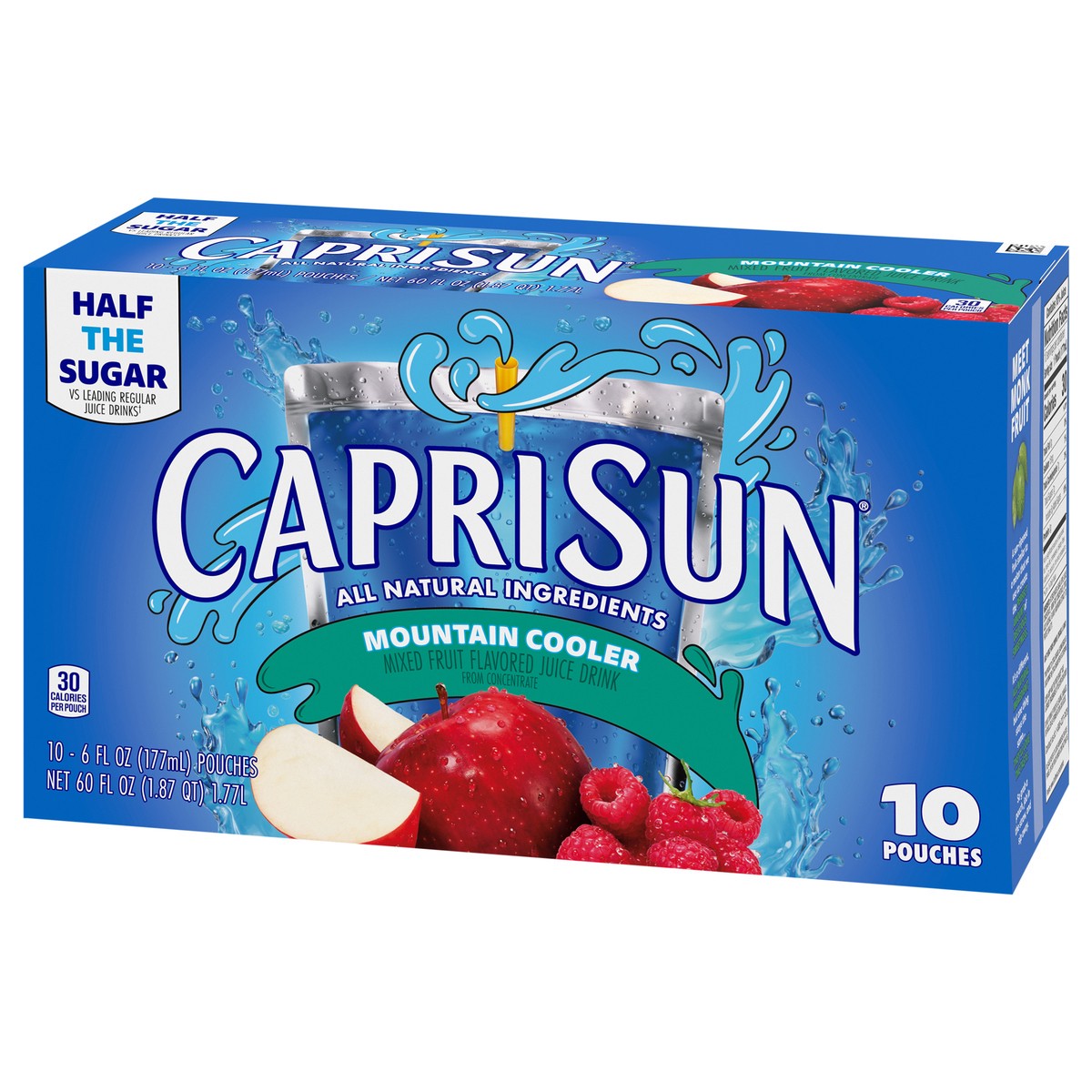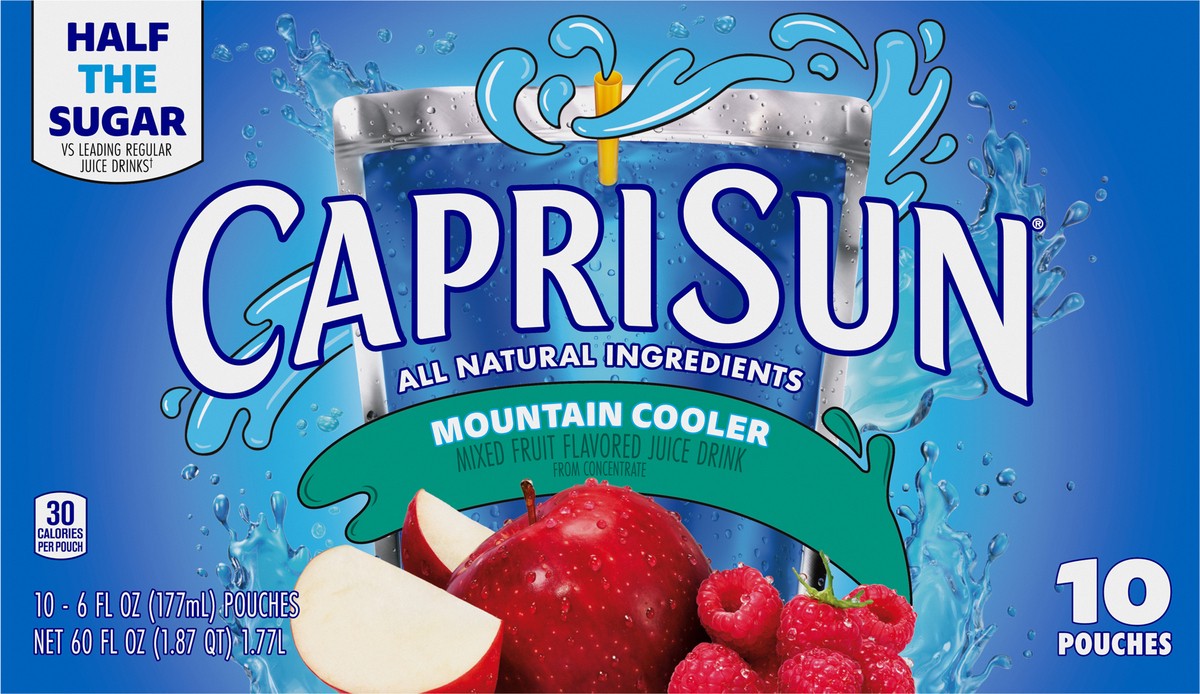 Grab a little juicy freedom with Capri Sun Mountain Cooler Mixed Fruit Flavored Juice Drink. Made with the all-natural sweetener, monk fruit, our Mountain Cooler drink has a crisp apple and red raspbe…