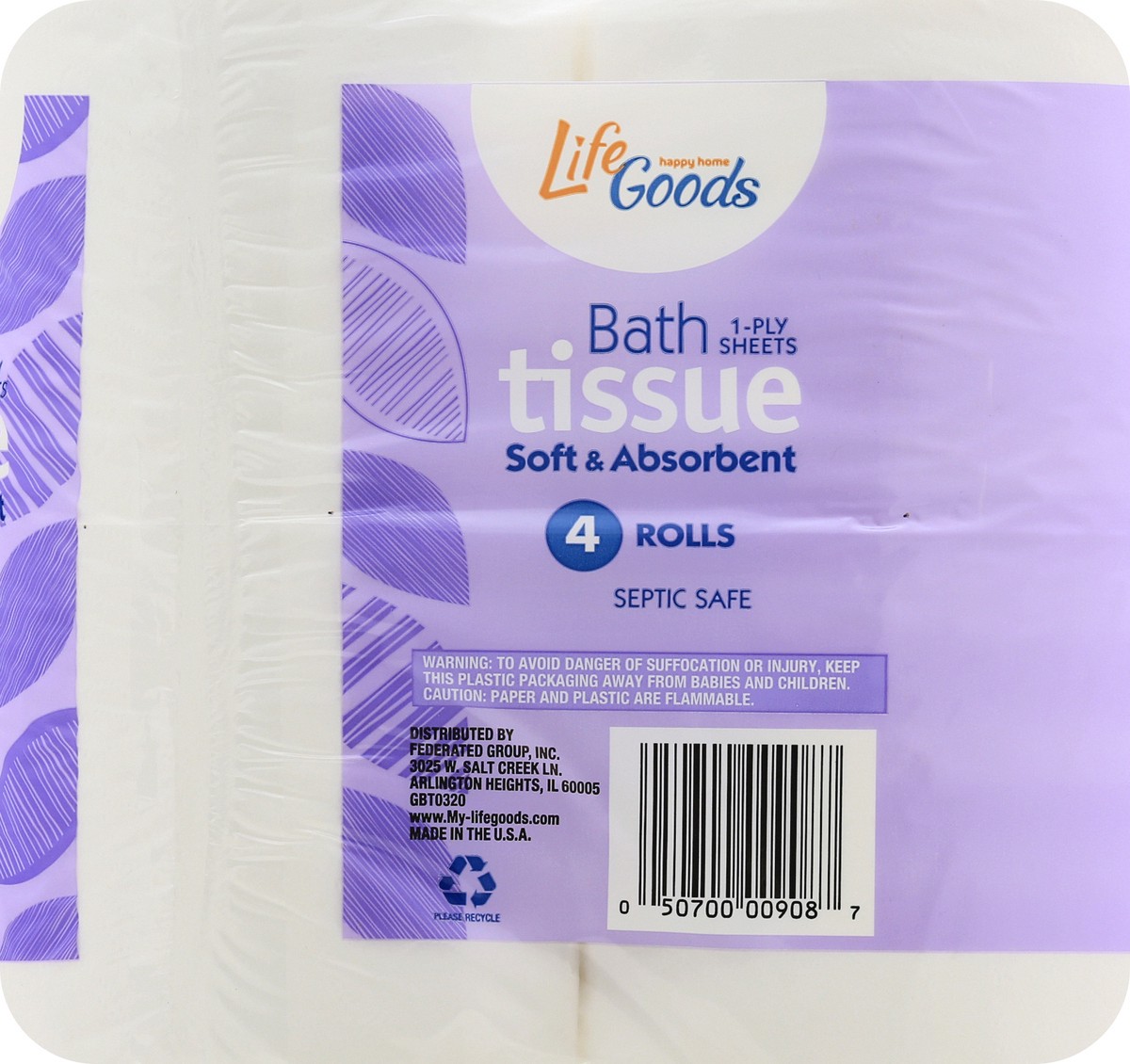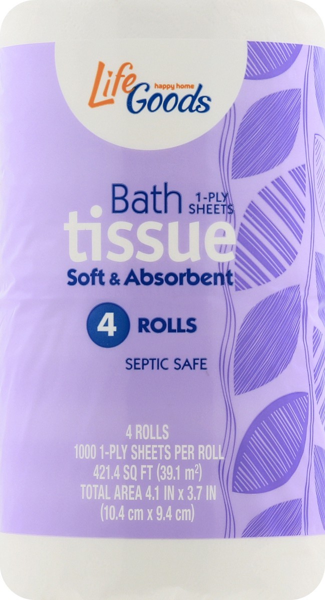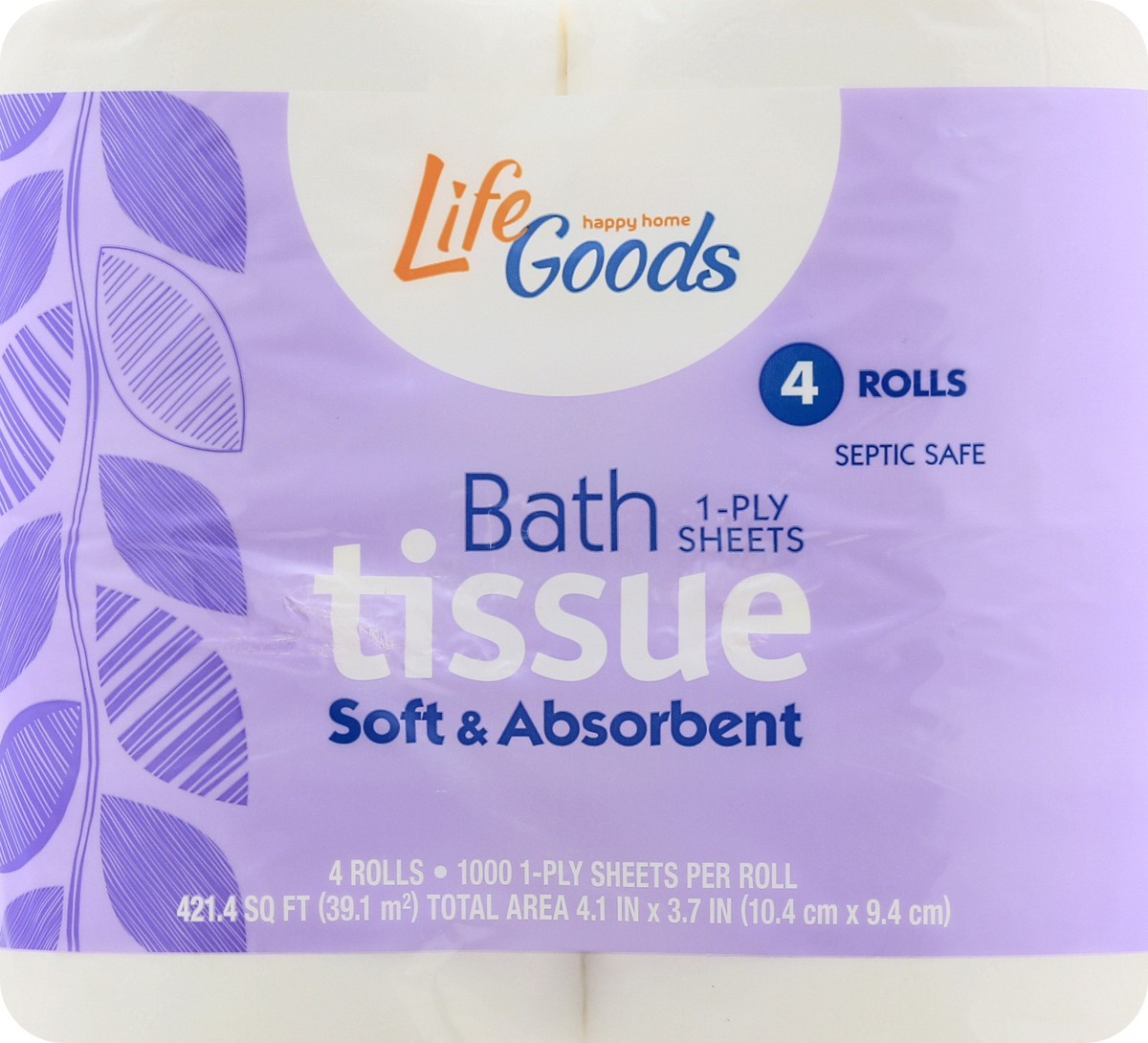 Life Goods 1-Ply Soft & Absorbent Bath Tissue 4 ea