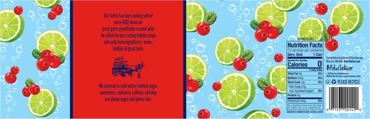 Polar Seltzer Cranberry Lime - 12-12 Fl. Oz.