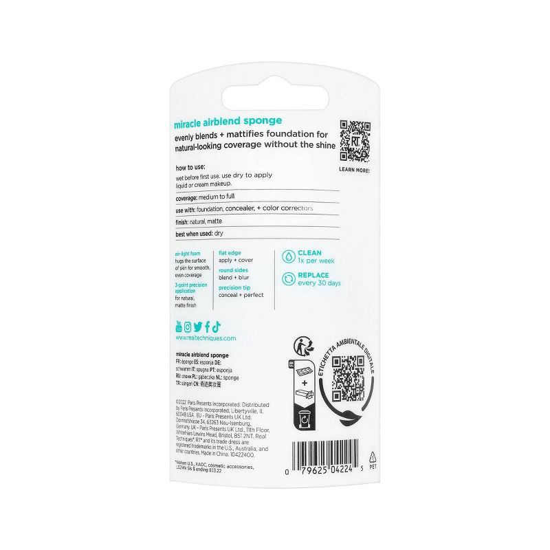 The Real Techniques Miracle Airblend Sponge evenly blends foundation for natural-looking makeup without the added shine. Our mattifying makeup sponge is for those who prefer less glow and more coverag…