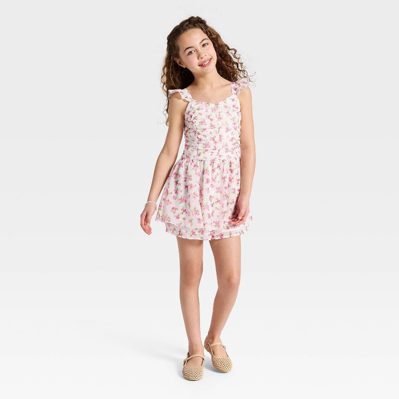 They'll be excited for fun outings in these Chiffon Floral Printed Romper from Cat & Jack™. Made from recycled polyester woven fabric with full lining for comfortable wear, this chiffon floral romper …