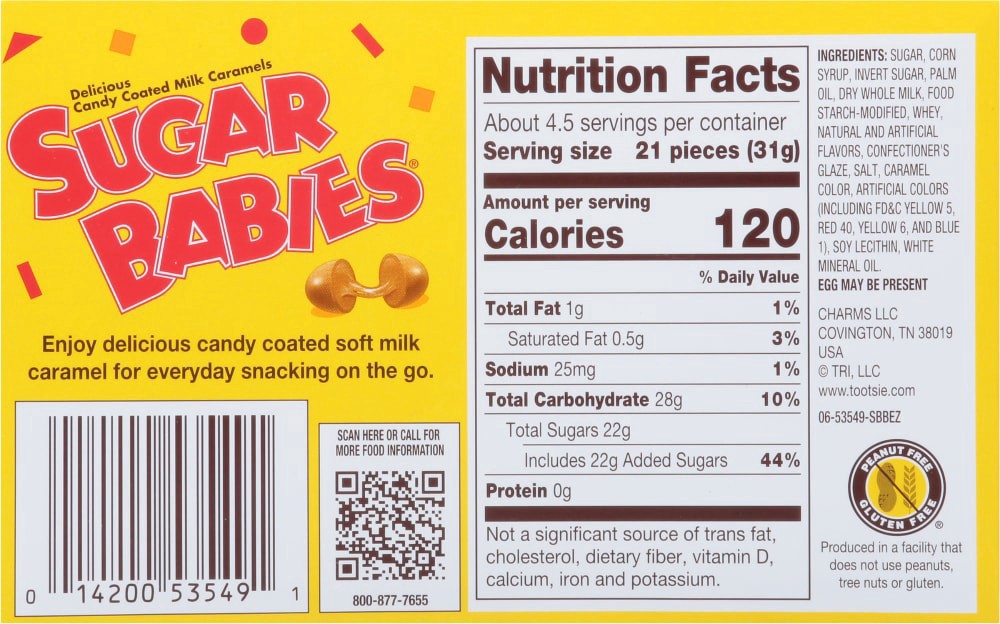 Enjoy bite-sized, milk caramel goodness with Sugar Babies, America's favorite chewy caramel treat. Introduced in 1935 in response to the success of the Sugar Daddy caramel lollipop, this younger caram…
