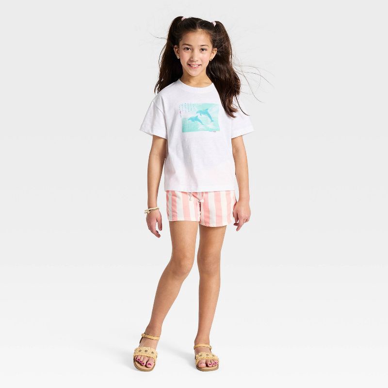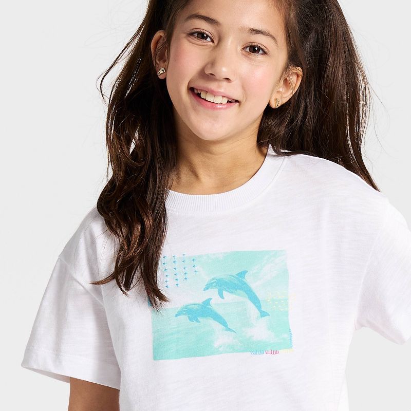 Girls' Short Sleeve Relaxed Fit 'Dolphin' Graphic T-Shirt - Cat & Jack™ White XS