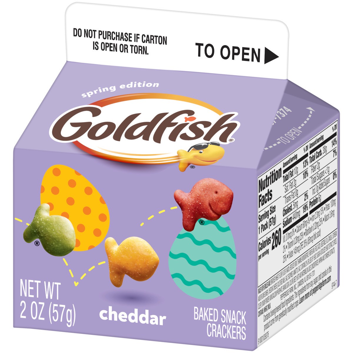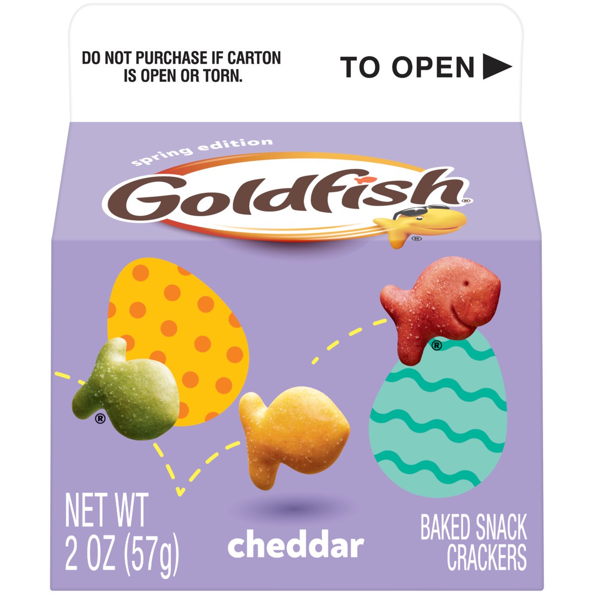 - Includes one (1) 2-ounce carton of Goldfish Easter Colors Cheddar Crackers