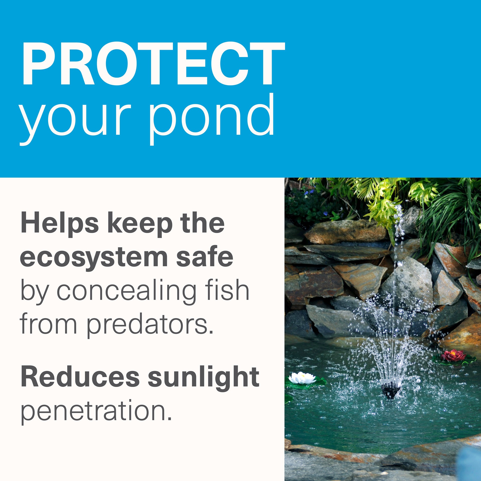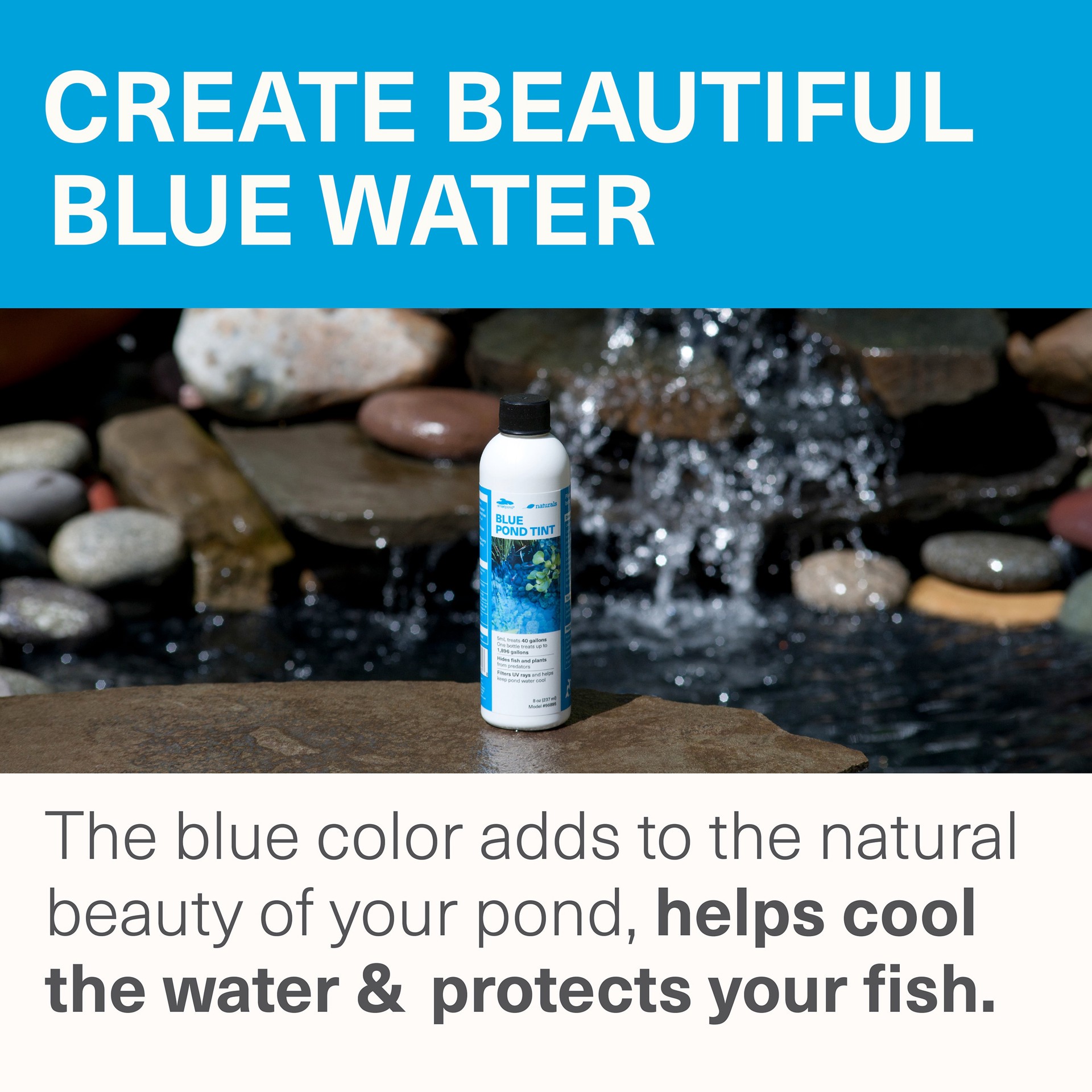 smartpond Pond Tint enhances the natural beauty of your pond by adding a brilliant, reflective blue color, creating a stunning visual impact. The blue tint aids in a safe and healthy ecosystem by help…
