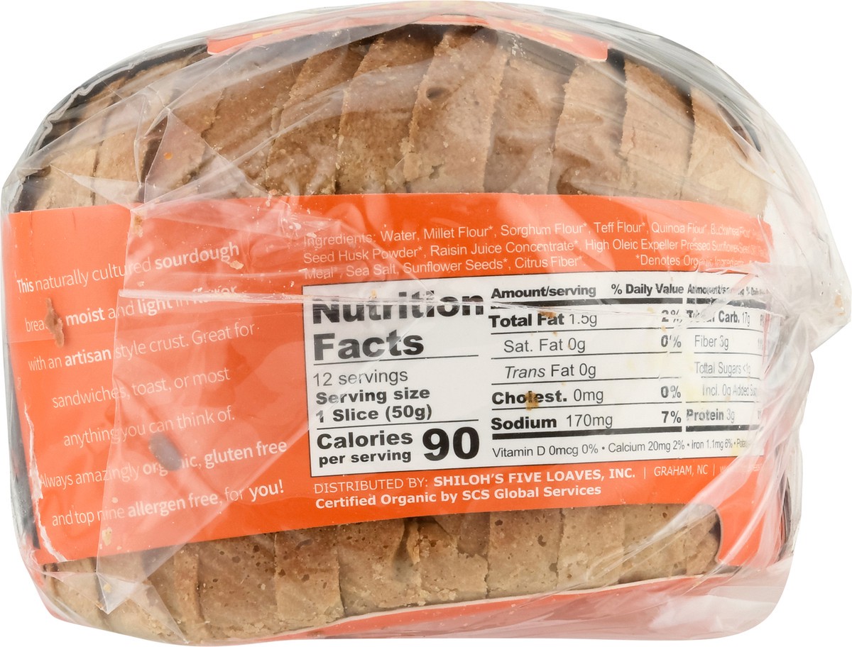 Water, Millet Flour*, Sorghum Flour*, Teff Flour*, Quinoa Flour*, Buckwheat Flour*, Psyllium Seed Rusk Powder*, Raisin Juice Concentrate*, High Oleic Expeller Pressed Sunflower Seed Oil*, Flax Seed Me…