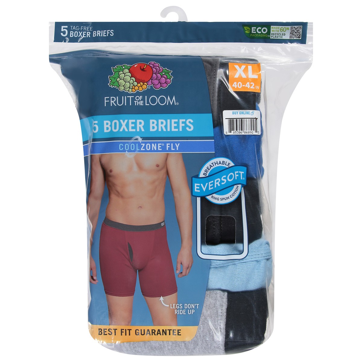 Fruit of the Loom CoolZone Covered Waistband Men's Boxer Briefs take your favorite everyday underwear to the next level. These boxer briefs are made with a mesh fly that provides ventilation and suppo…