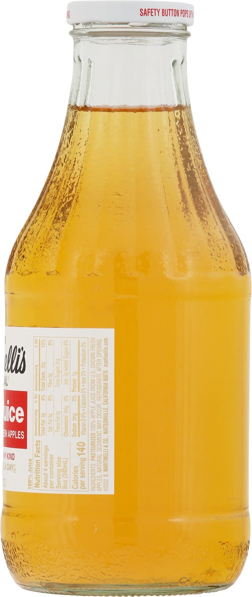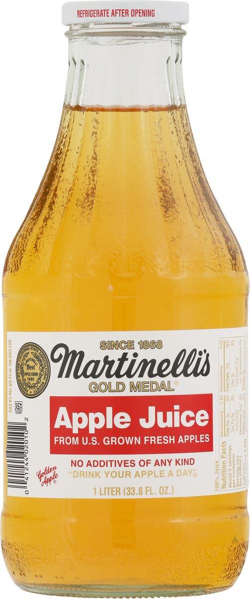 Pasteurized 100% Apple Juice from U.S. Grown Fresh Apples, Natural Sediment May Occur.