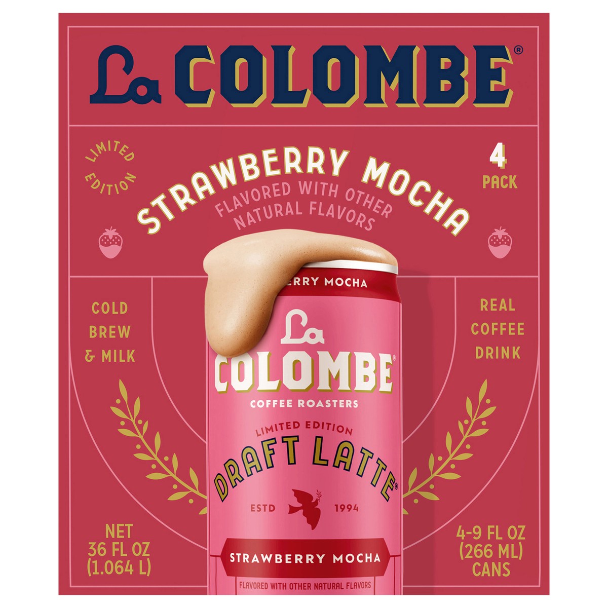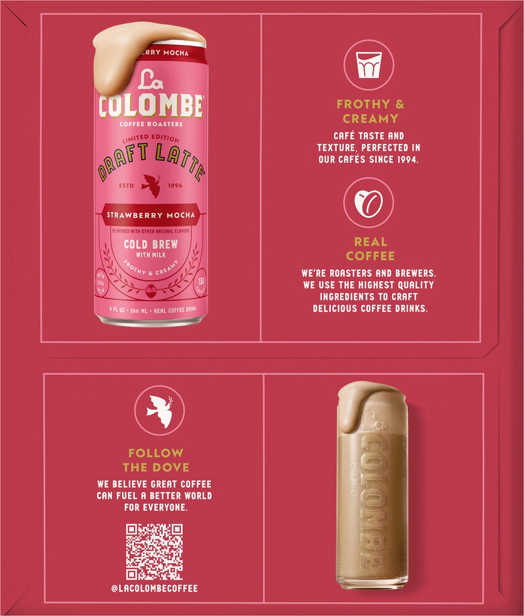 La Colombe Coffee, Strawberry Mocha Cold Brew Draft Latte, 9 fl oz Cans, 4 Pack