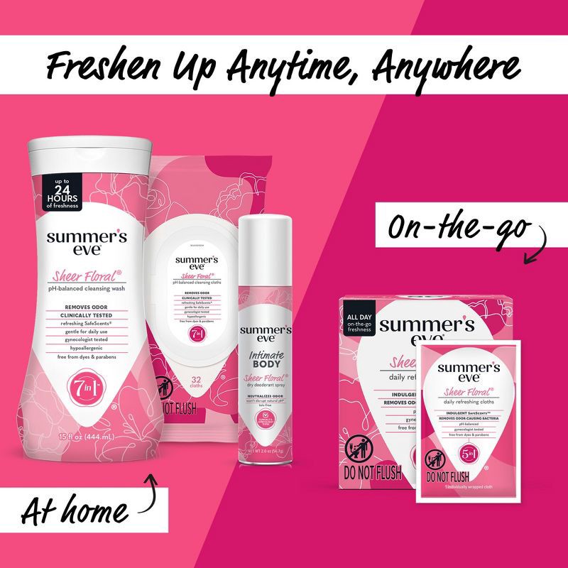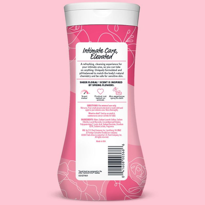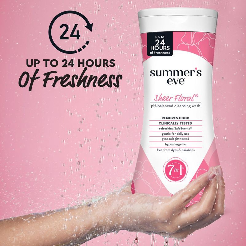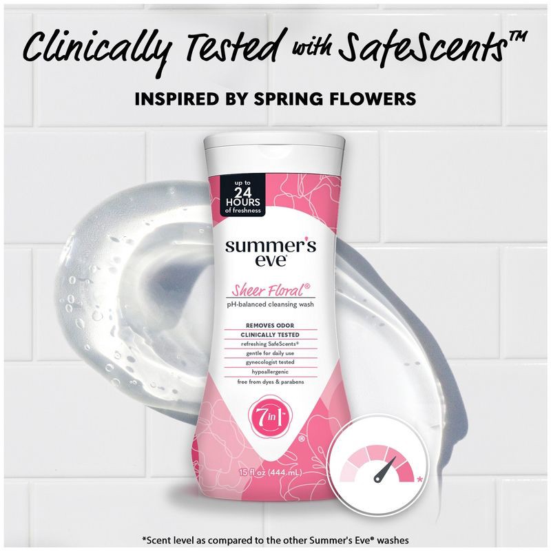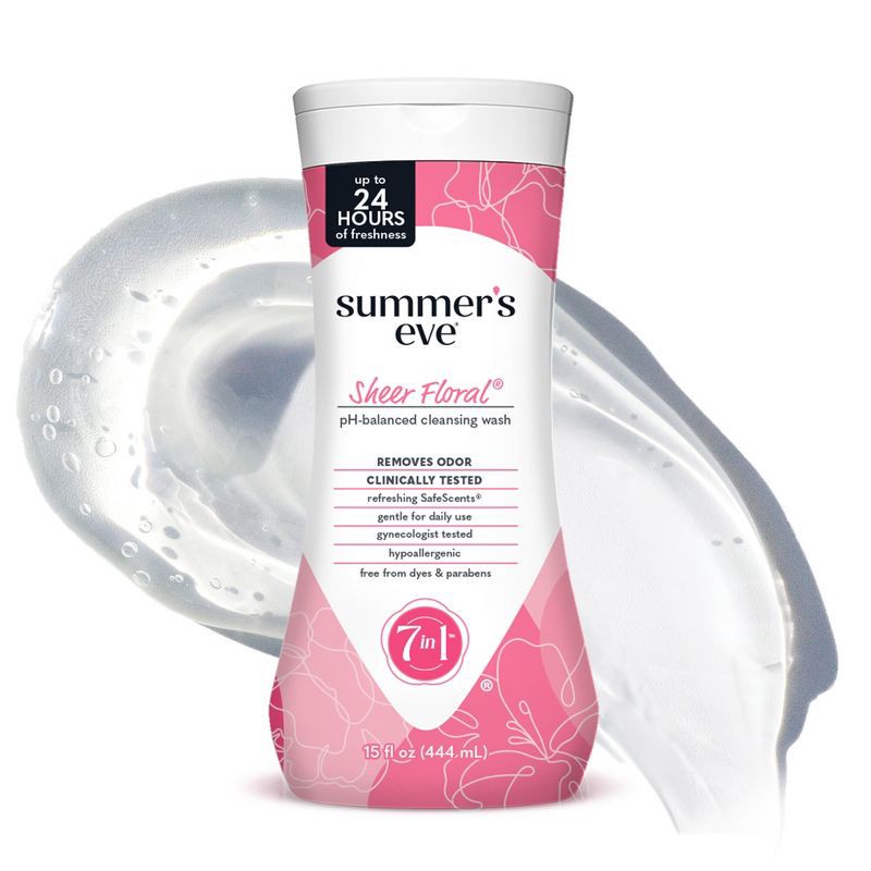 - Summer's Eve Sheer Floral feminine wash removes odor and cleanses your intimate area
