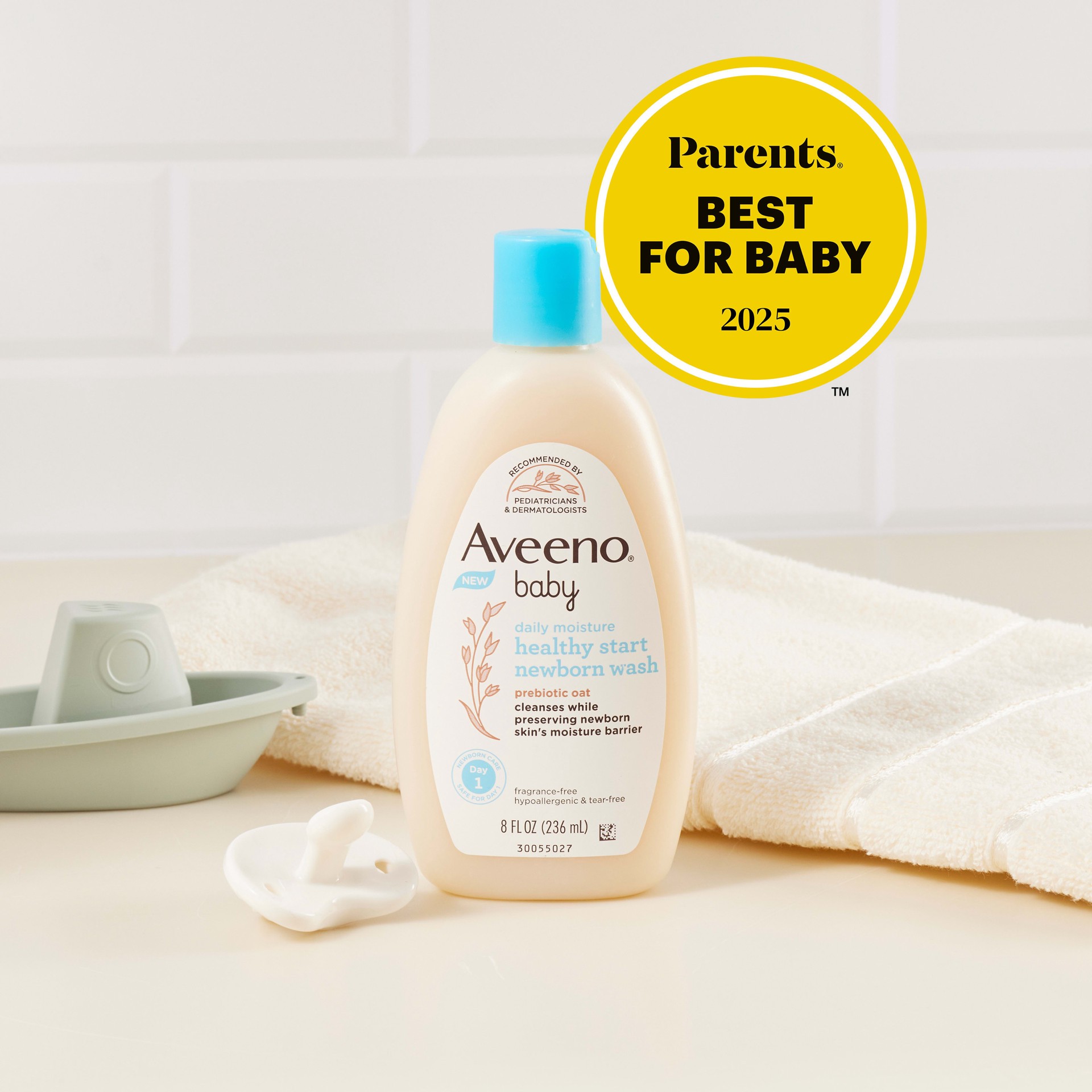 Gently cleanse your newborn baby's skin from day one with Aveeno Baby Daily Moisture Healthy Start Newborn Wash, winner of the 2025 Parents Best for Baby award seal. This mild baby body wash from a de…