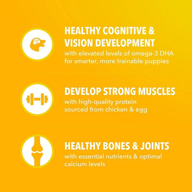 - Develop Strong Muscles: This IAMS puppy food recipe with high-quality protein from chickens & eggs helps develop strong muscles.