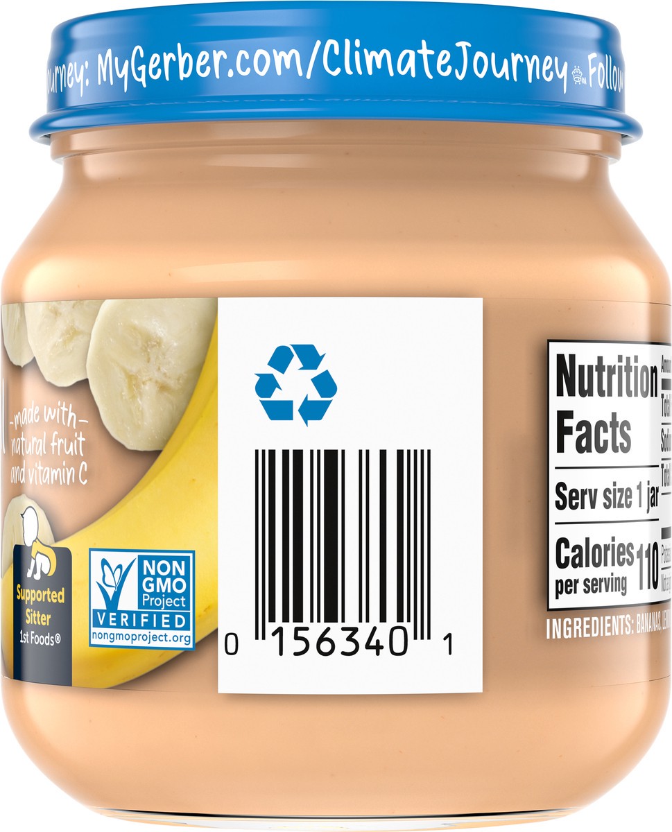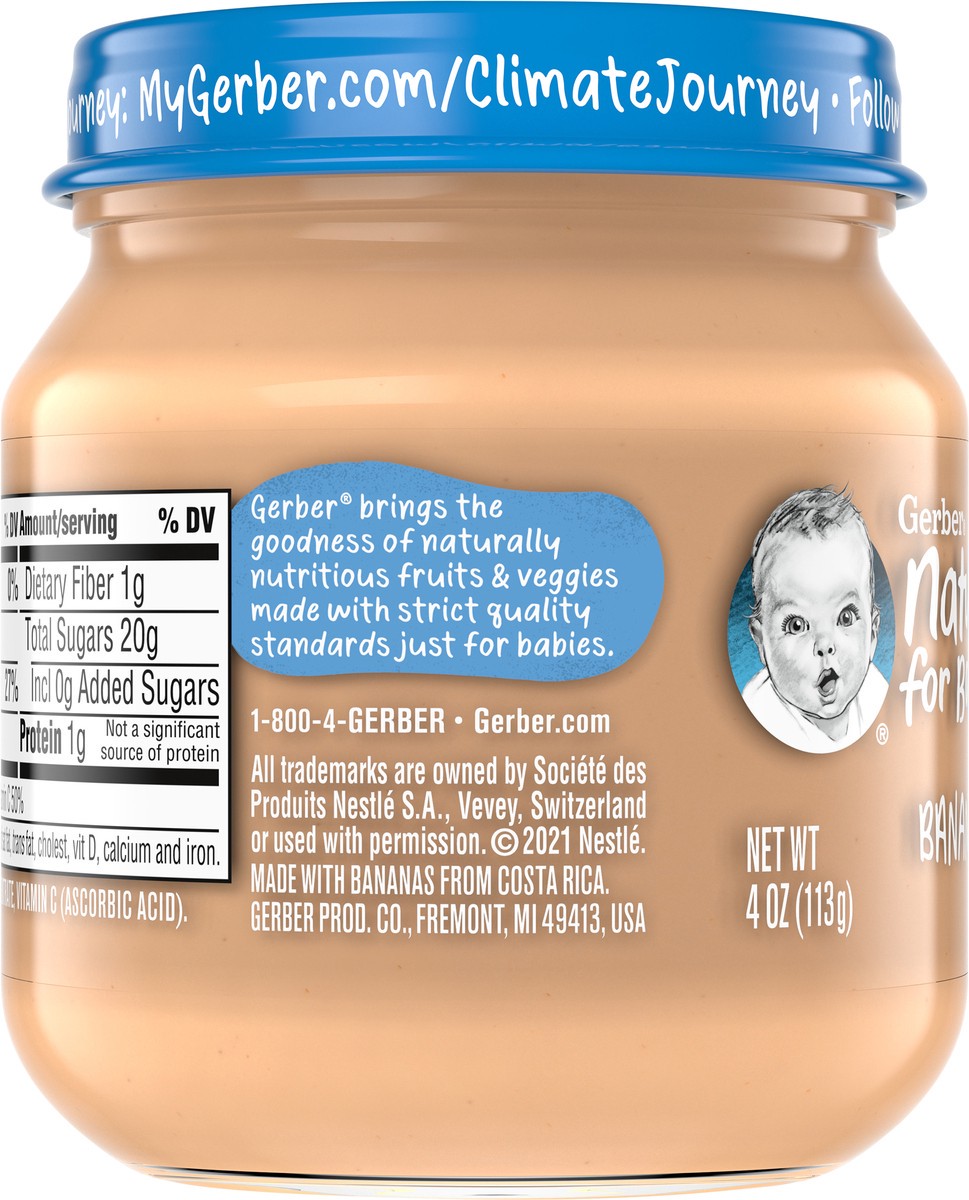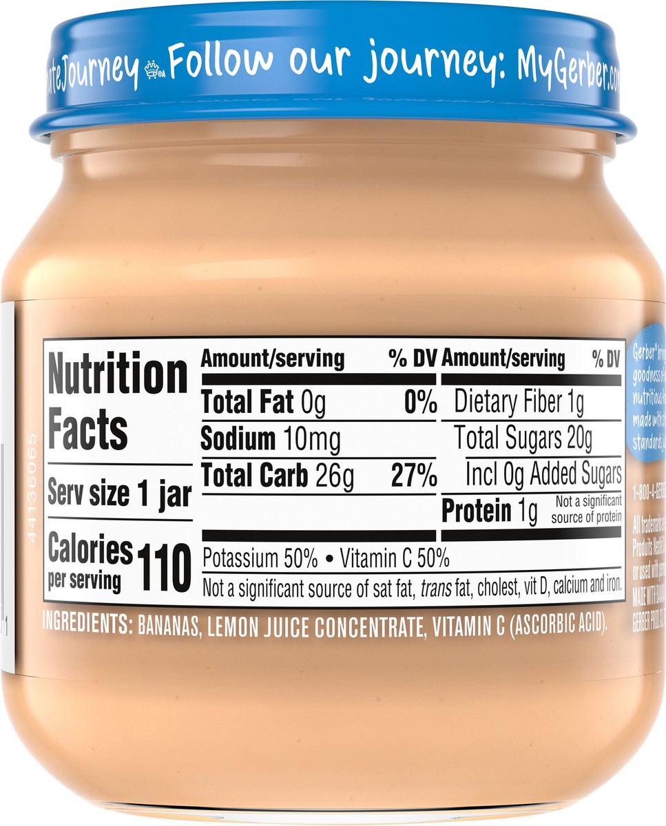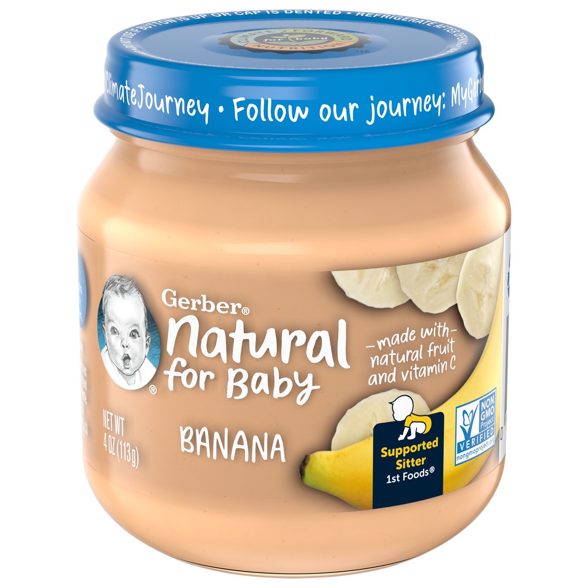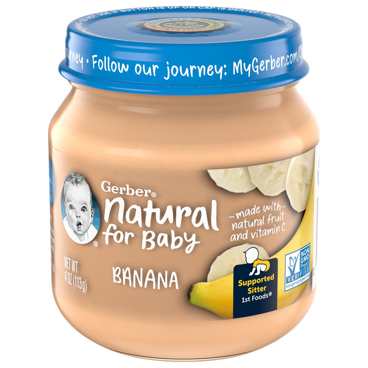 Start your baby's lifelong love of fruits with Gerber 1st Foods Natural Banana Baby Food. This non-GMO baby food stage 1 recipe includes bananas grown using Clean Field Farming practices and is unswee…