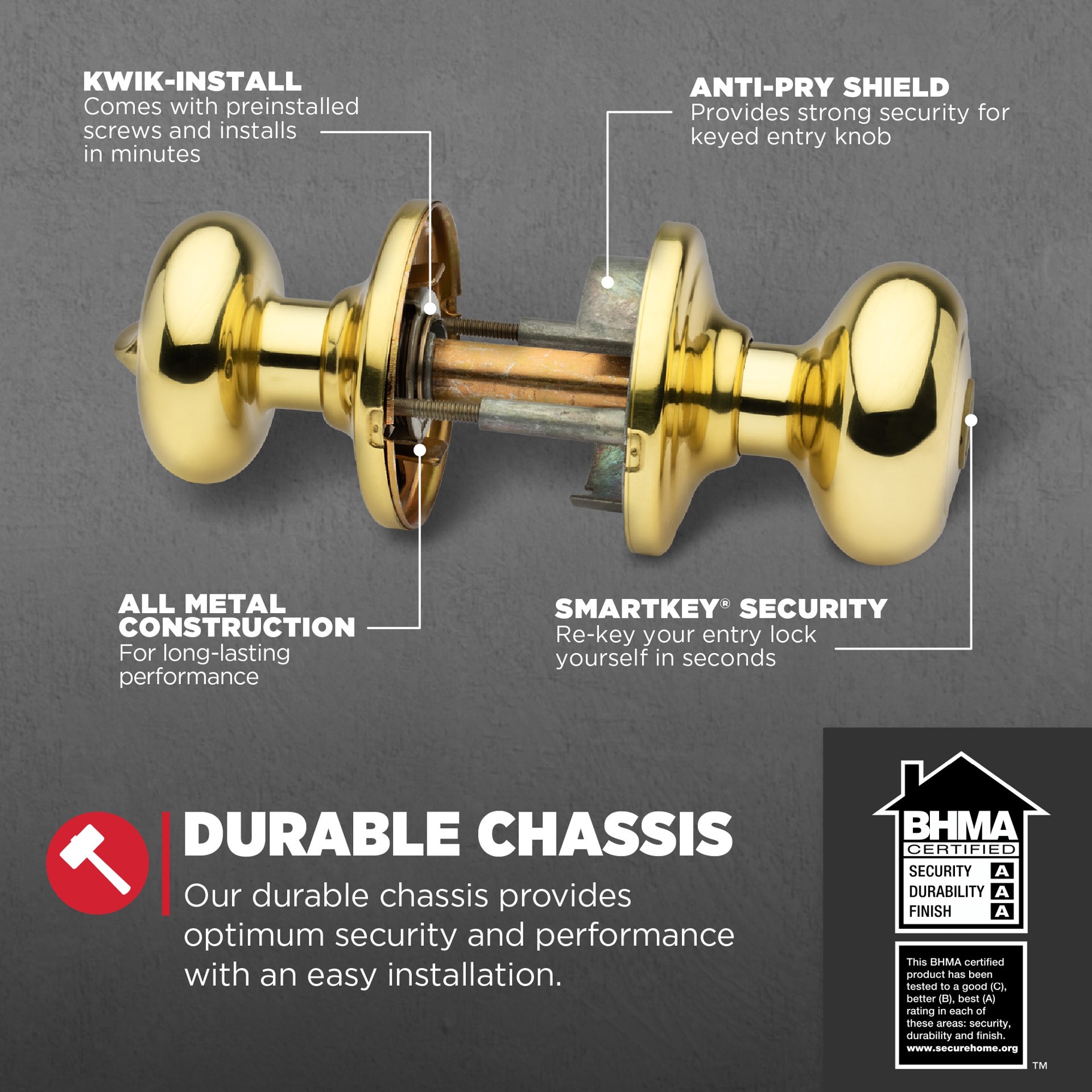 Kwikset Signature Series Juno Polished Brass Exterior Keyed Entry Door Knob ft. SmartKey Security