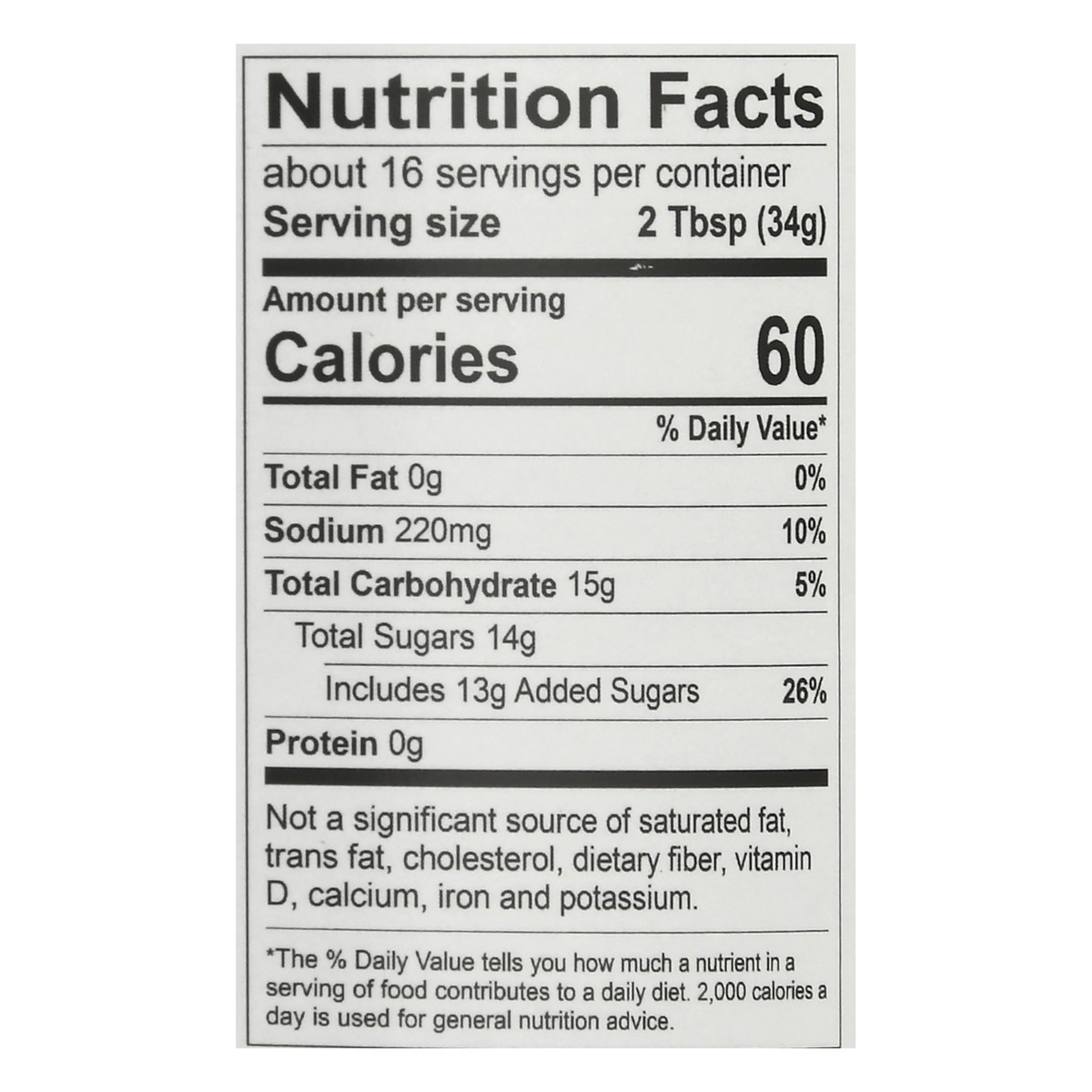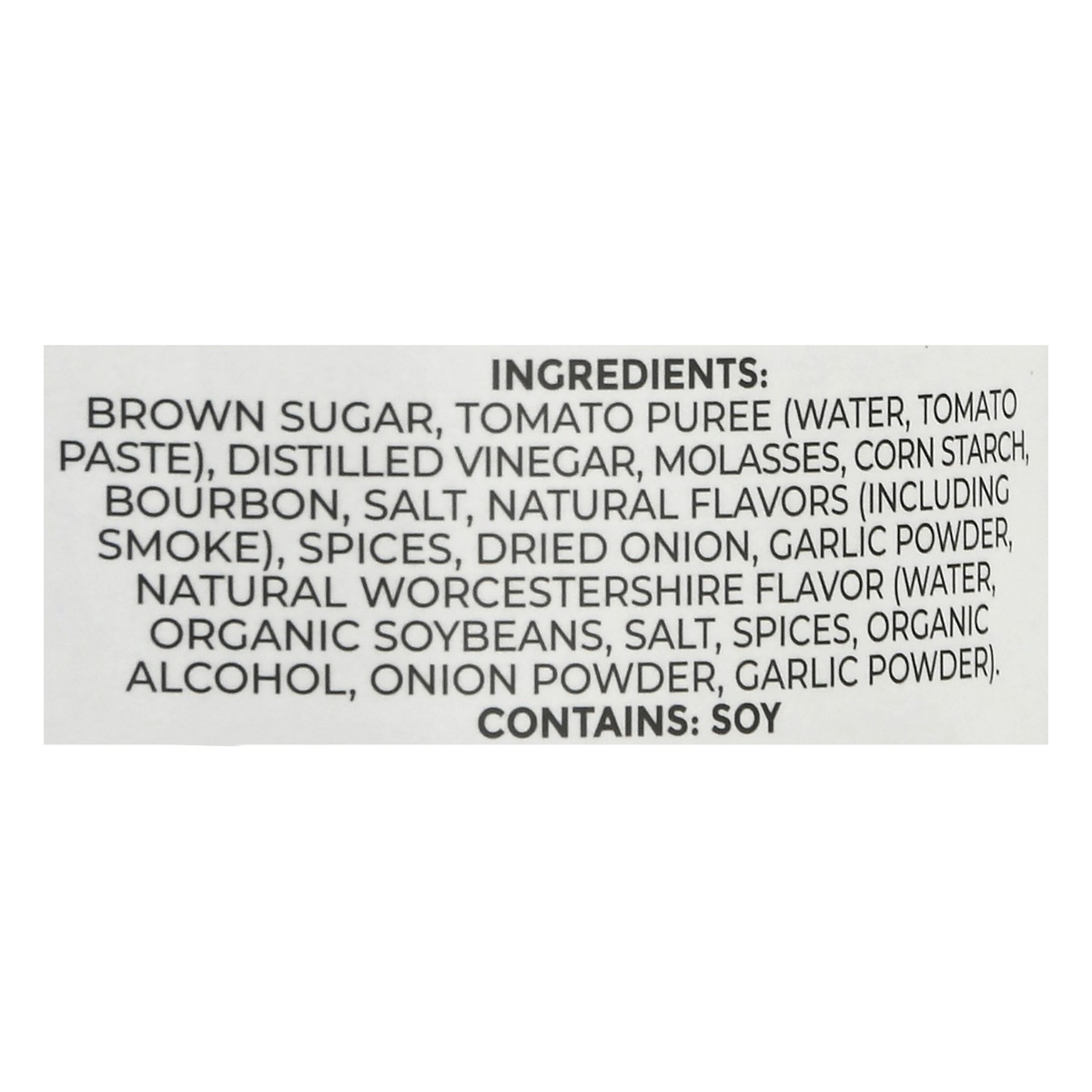 Brown Sugar, Tomato Puree (Water, Tomato Paste), Distilled Vinegar, Molasses, Corn Starch, Bourbon, Salt, Natural Flavors (Including Smoke), Spices, Dried Onion, Garlic Powder, Natural Worcestershire …