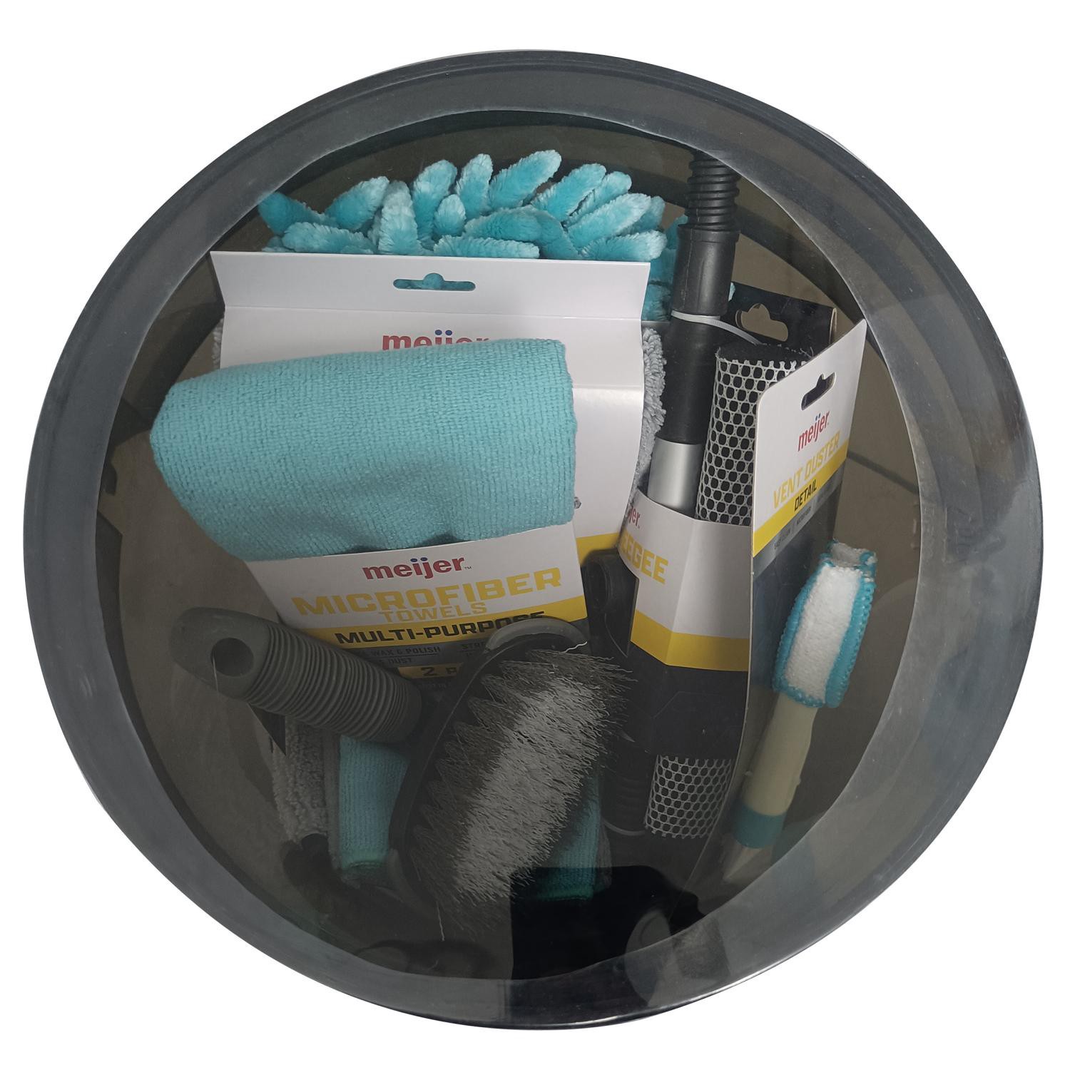 Keep your car clean with the Meijer Automotive Car Wash Bucket Kit. Kit includes: 3.43 gallon bucket (1), dirt drain (1), vent duster(1). microfiber towels (2), wash mitt (1), drying towel (1), squeez…