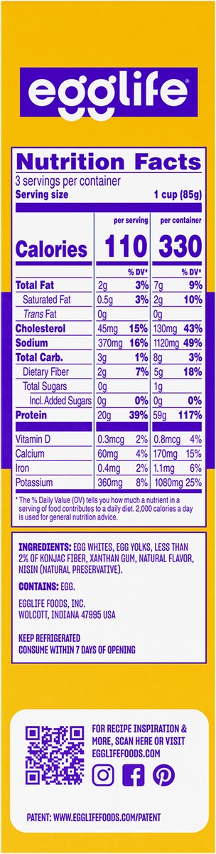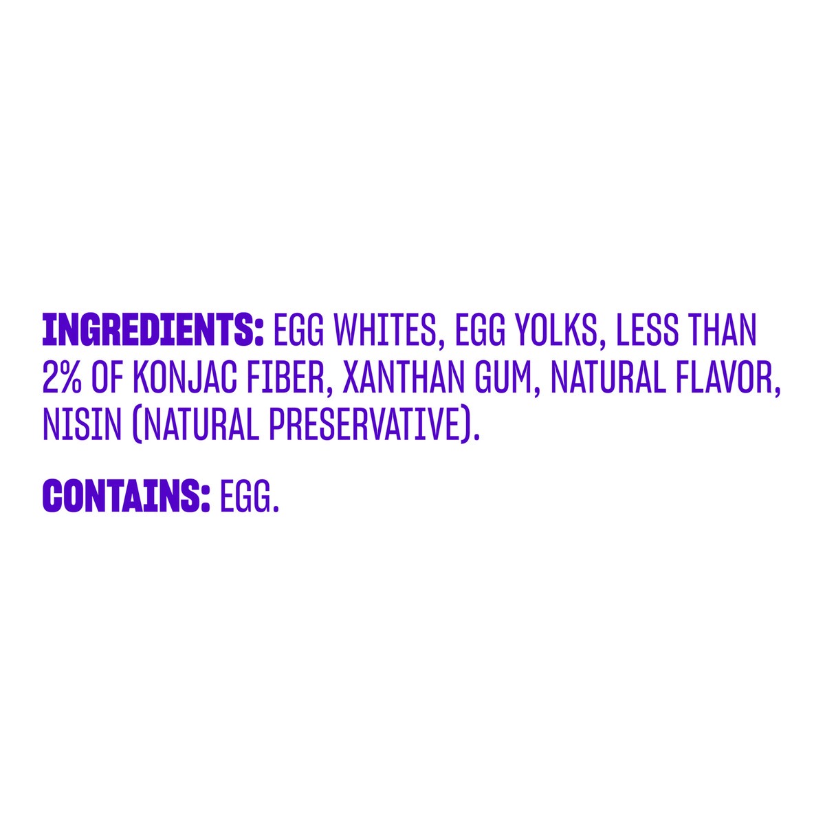 Egg Whites, Egg Yolks, Less than 2% of Konjac Fiber, Xanthan Gum, Natural Flavor, Nisin (Natural Preservative).