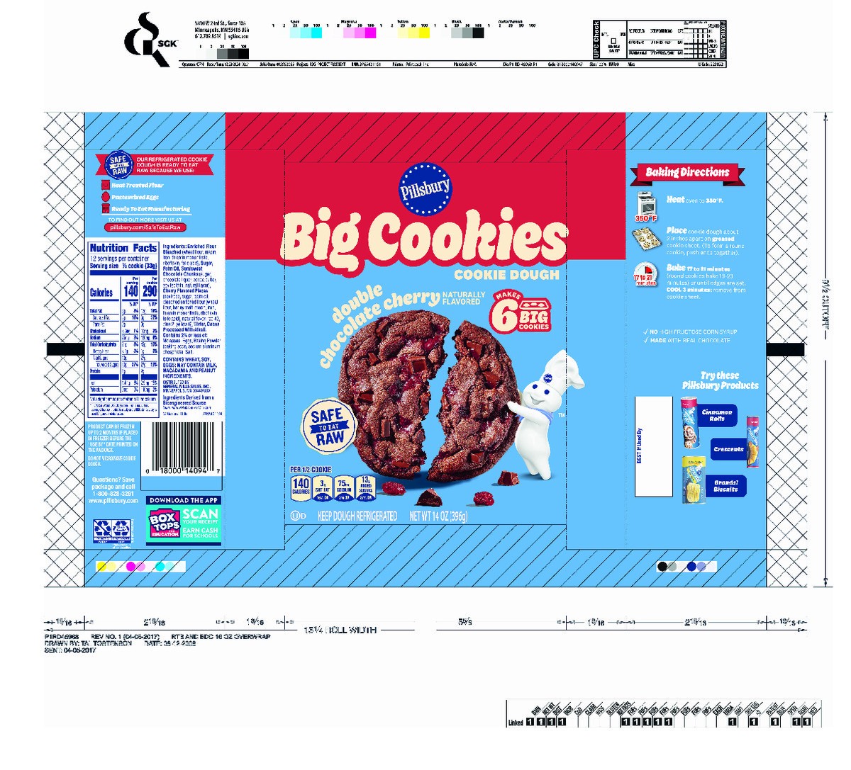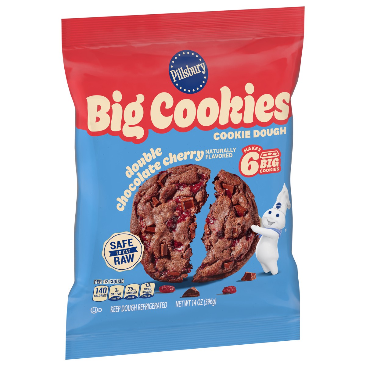 Pillsbury Ready to Bake! Big Cookies Double Chocolate Cherry Cookie Dough, 6 Count, 14 oz