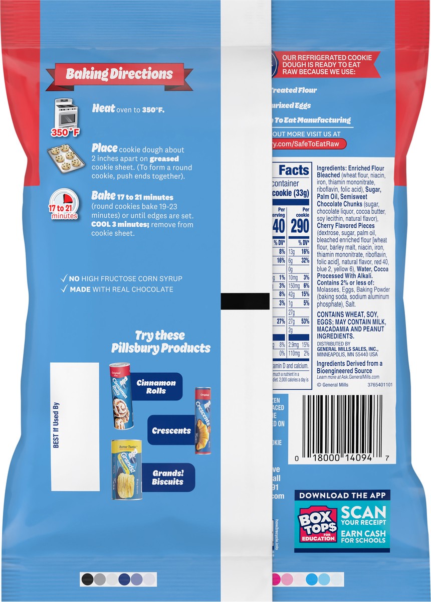 Add sweet joy to your day with Pillsbury Big Cookies Double Chocolate Cherry Cookie Dough. You'll have chewy, delicious cookies ready in minutes with no mixing, no mess! Simply heat the oven, place th…