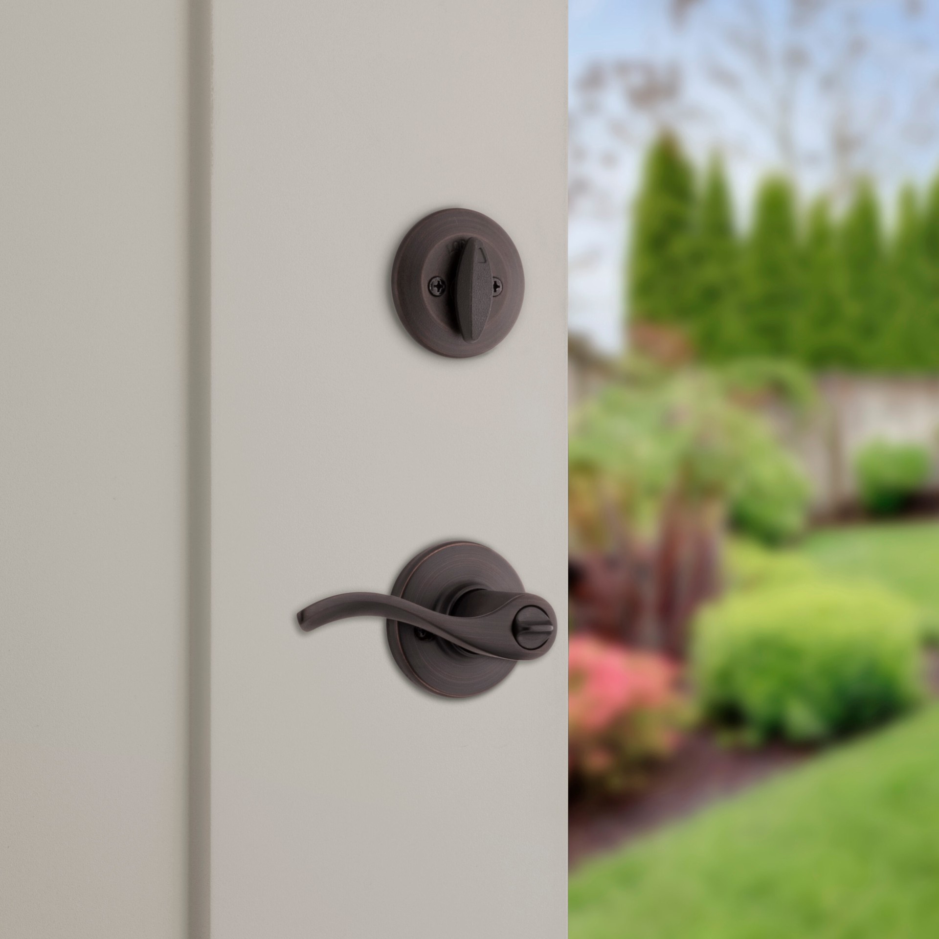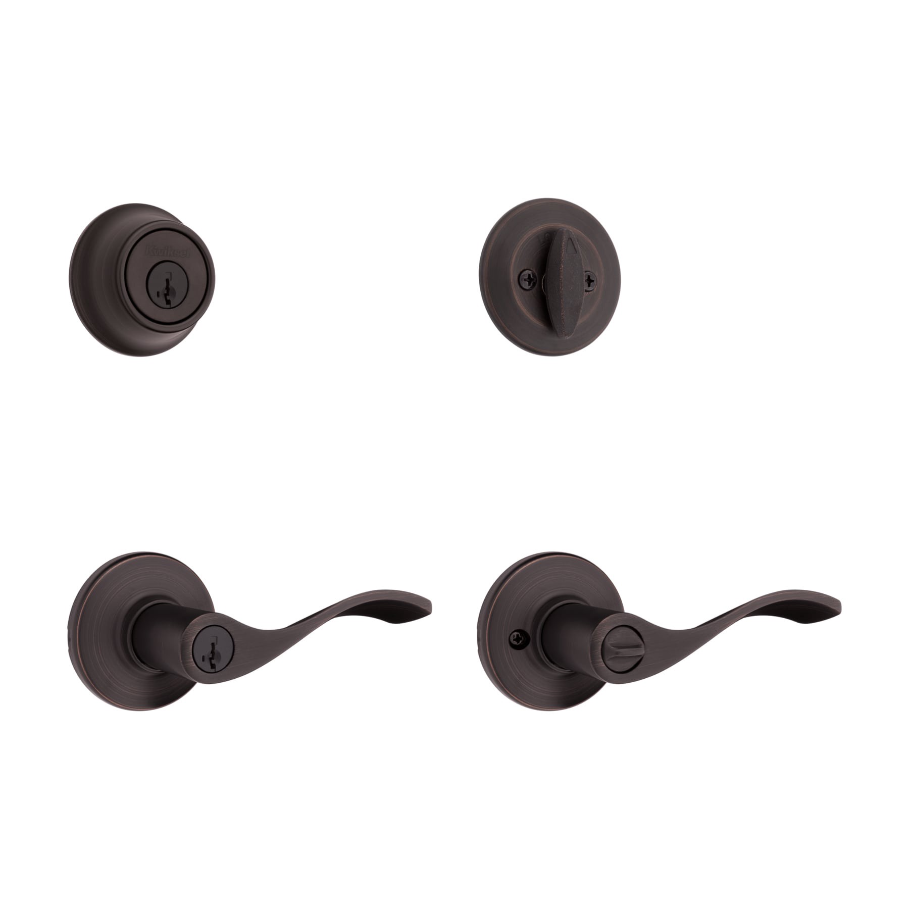 Kwikset Balboa Venetian Bronze Exterior Single-Cylinder Deadbolt and Keyed Entry Door Handle Combo Pack ft. SmartKey Security