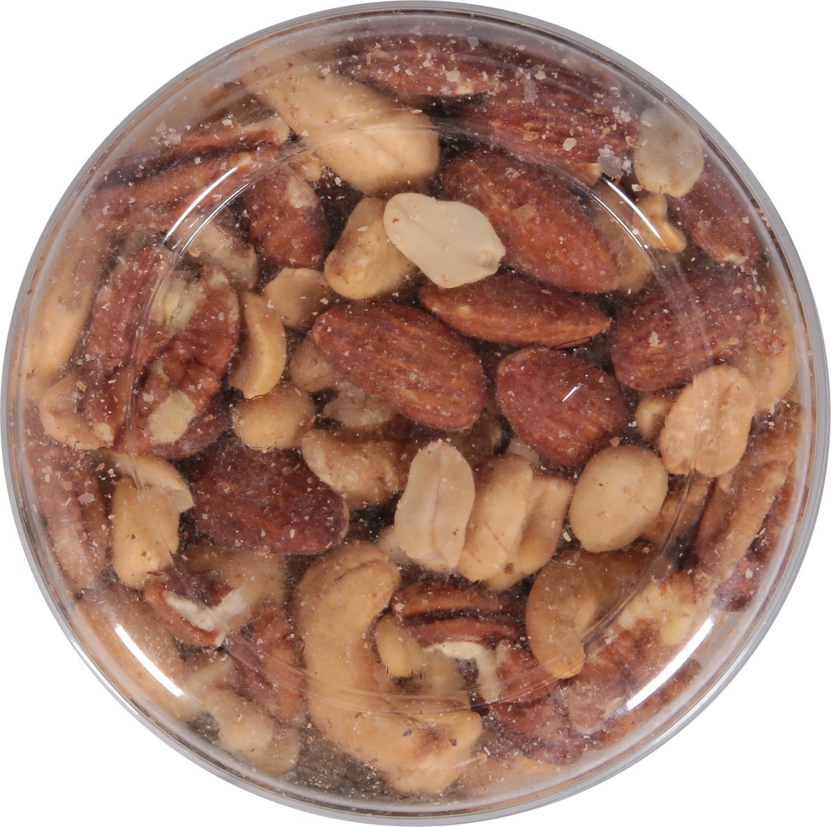 Contains: peanuts. cashews, almonds, pecans. walnuts. may contain: other tree nuts, milk, soy, wheat, sesame.